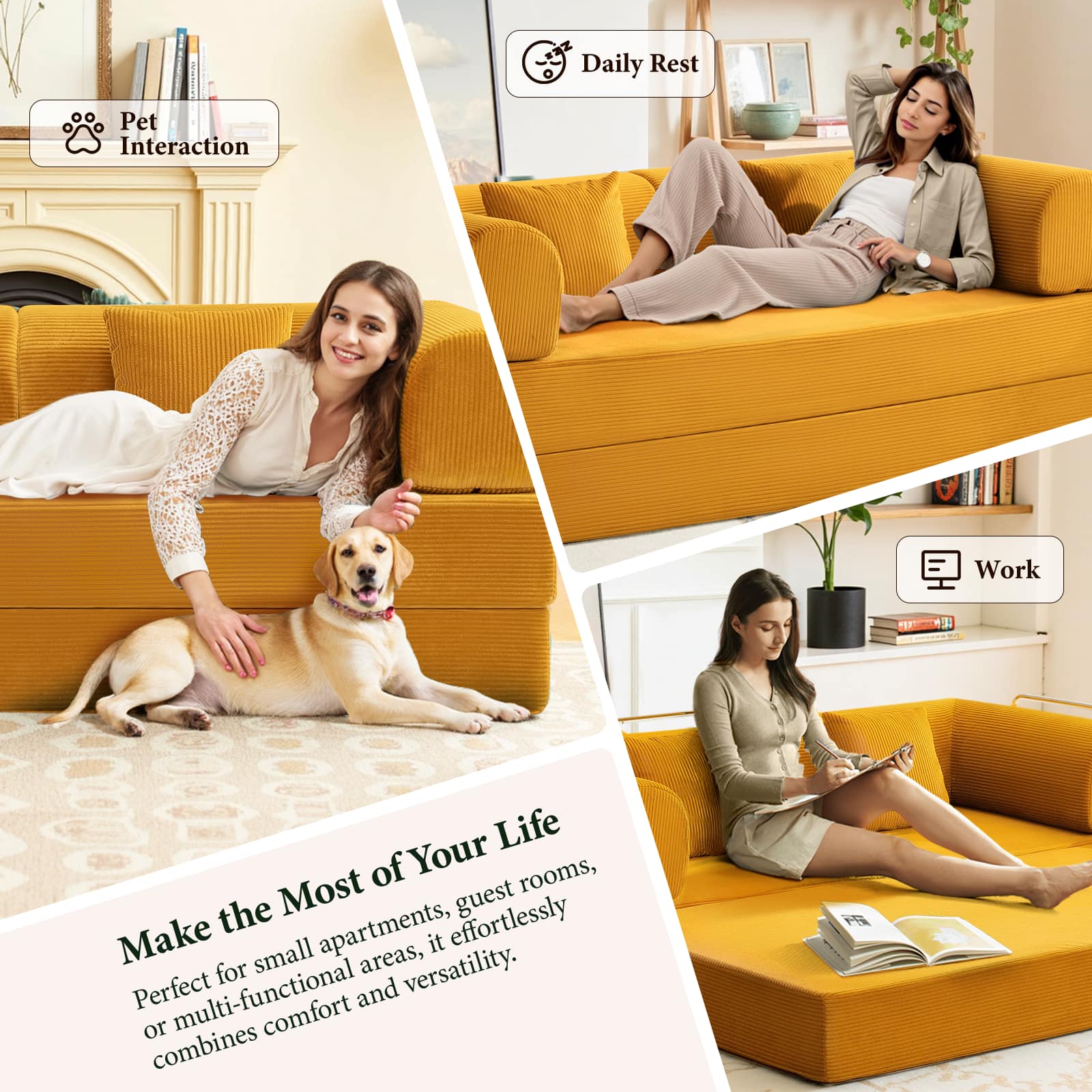 This review is from KERDOM - 78 Inch W Sectional Modular Sofa, 3-4 Person Corduroy Sofa Bed Foldable, High Rebound Density Sponge Sofa, Block Couch - Green
