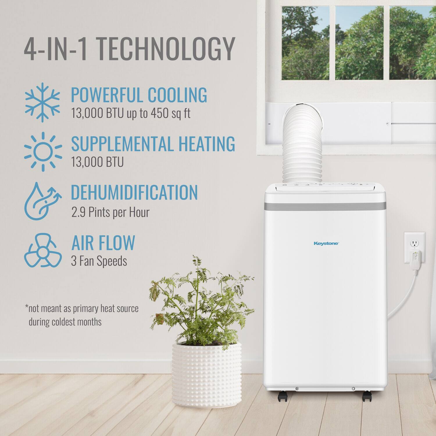 This is my second portable A/C unit, and it's a larger unit than the other. I had it placed in the LR, which faces south, and the condensate drains into the included hose, exiting the house through through a hole that the plumber drilled through the LR wall out to the front yard. It is quieter than the other unit and keeps the room uniformly cool. I haven't had it long enough to use the heater, but based on its performance so far, I'd definitely buy it again.