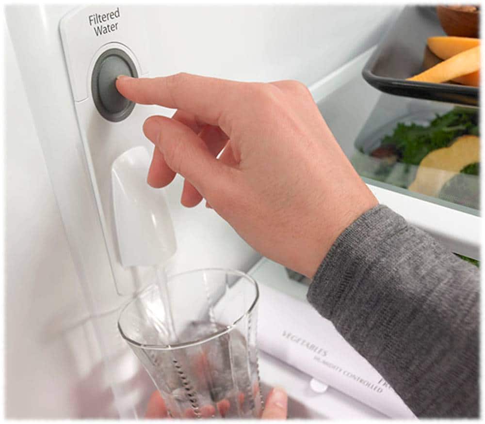 This was not the refrigerator we wanted to buy, but our refrigerator had died and it was the only one available for delivery soon enough. I was not happy that it did not have water and ice on the outside of the door, But, now that we've had it for a while, I see that it's not really much trouble to take out the ice and water from inside the refrigerator and the good thing is that there is always much more ice available than when we had it on the outside. Also, we see that things are laid out inside in a very practical way and there seems to be much more room for items than we first realized. In fact, my only complaint is that the fruit and vegetable drawers, which are very roomy, could slide in and out a bit more smoothly. To make up for that, I love how, when you pull out the meat tray, the top opens up and you can reach things in the back much more easily than with our old meat tray. I'm also happy that even though we previously had 7 door shelves and now we only have 6, they are bigger and hold even more. And, finally, the best part is that our vegetables and milk are staying fresh longer than with our old refrigerator. Our conclusion is that we have ended up being very pleased with our purchase. I would definitely recommend this KitchenAid product.