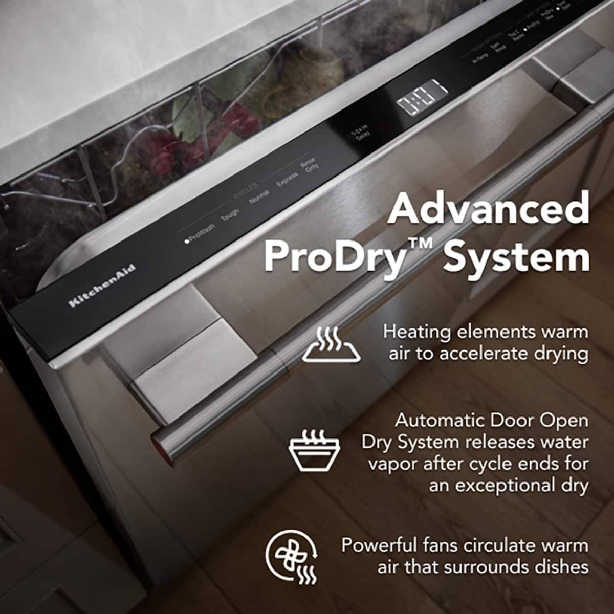Looks great. Even better is the great job it does cleaning the dishes. I am using the recommended pods. The center and top rack glide function is not as silky smooth as described. Not a big deal as cleaning is more important. I wondered about the open-door drying creating an issue with condensation outside of the washer. It has not been an issue, and everything is bone dry.