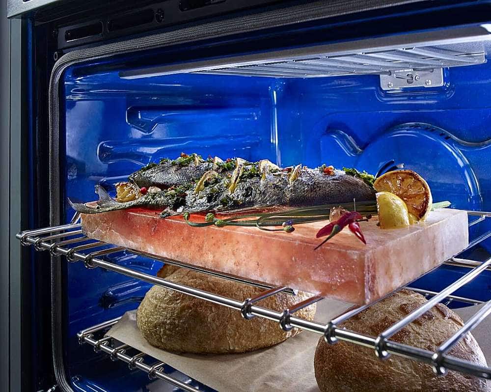 Replacing our previous Kitchen Aid oven/microwave combo was the natural thing to do. Still a perfect fit in our custom kitchen. The new one is much prettier with the blue inside of the oven and better lighting. The microwave is also a stronger unit. More sophisticated controls dial in cooking easier than the old one. My only complaint is it took 6 months to receive the unit. The installation crew scratched our hardwood floor we had just refinish, but the company quickly paid to have it fixed. Now we’re just hoping the floor repair company can do this in less than 6 months.