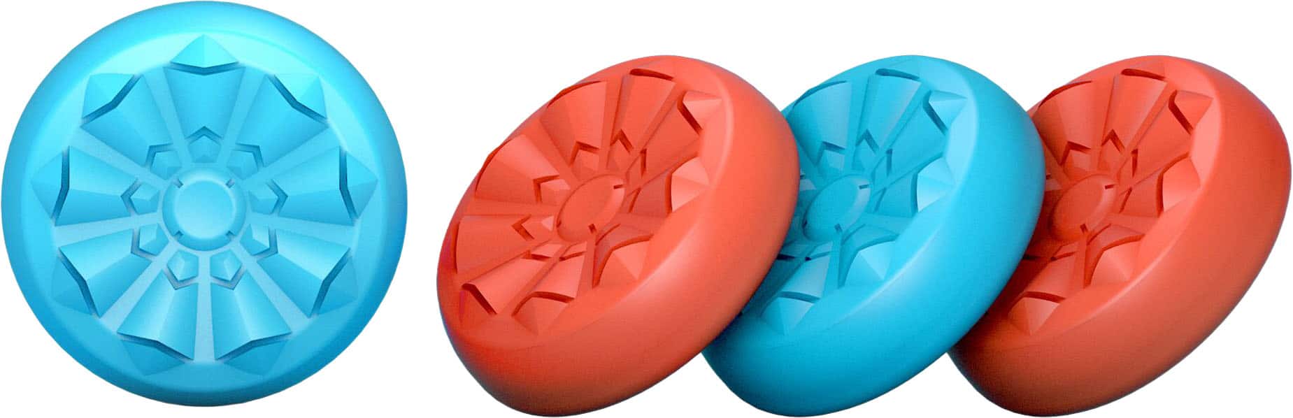 I like them the most out of other ones I’ve tried. Thumb-sticks feel tactile and grippy, low profile, still allows for me to store in my tomtoc case no big deal. I would recommend these to anyone who wants to preserve the life of their OEM joycon as well as improve experience. The colors add a nice touch of life to the otherwise bland black original one, the colors do indeed match up very well to the blue and red color way on my switch 2. Does come with 2 sets in different heights.