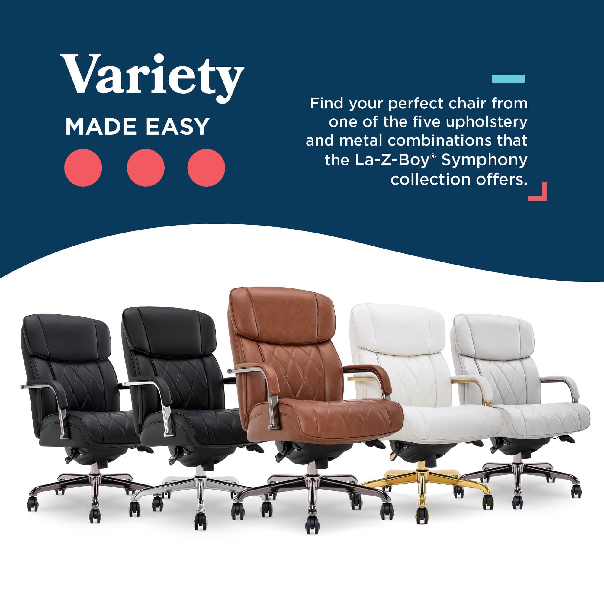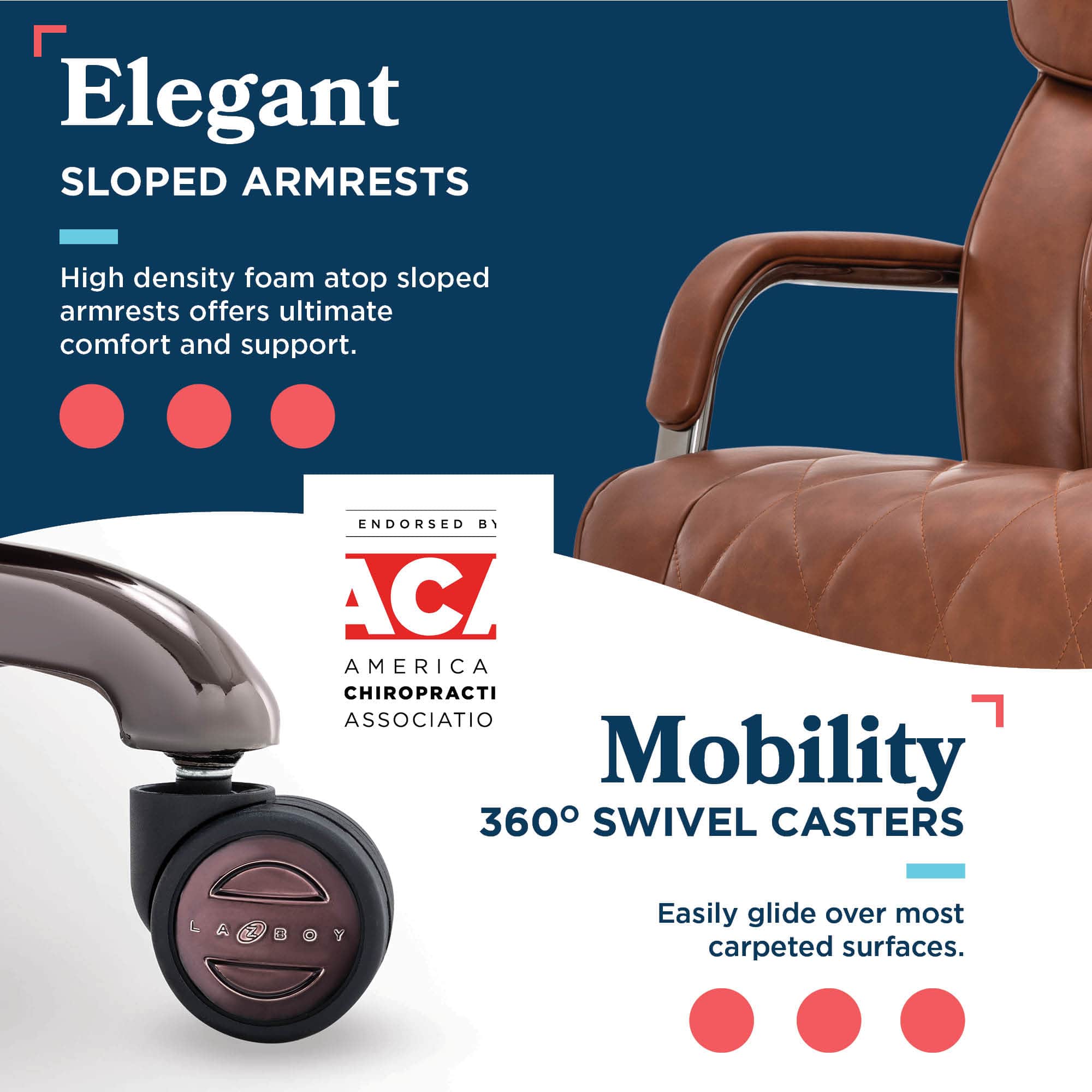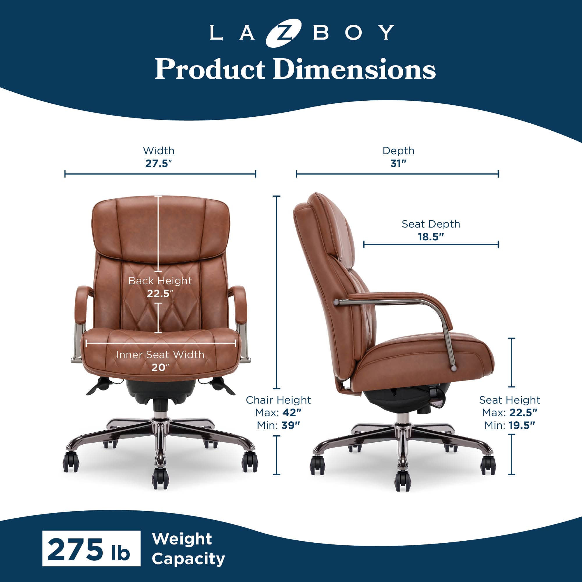 I was excited to receive this La-Z-Boy chair as they used to be known for their quality. The base finish is absolute garbage, it was flaking and peeling right out of the box. The emblem on the back of the chair is crooked. I only gave two stars because the chair is very comfortable.