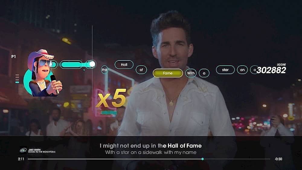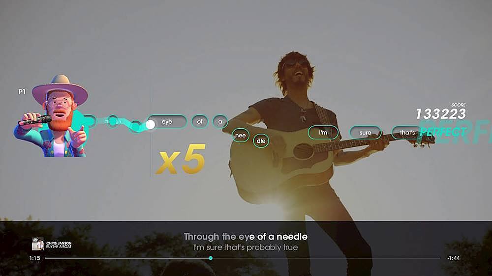 Great game, good fun. I like how they grade the difficulty of the songs to sing.