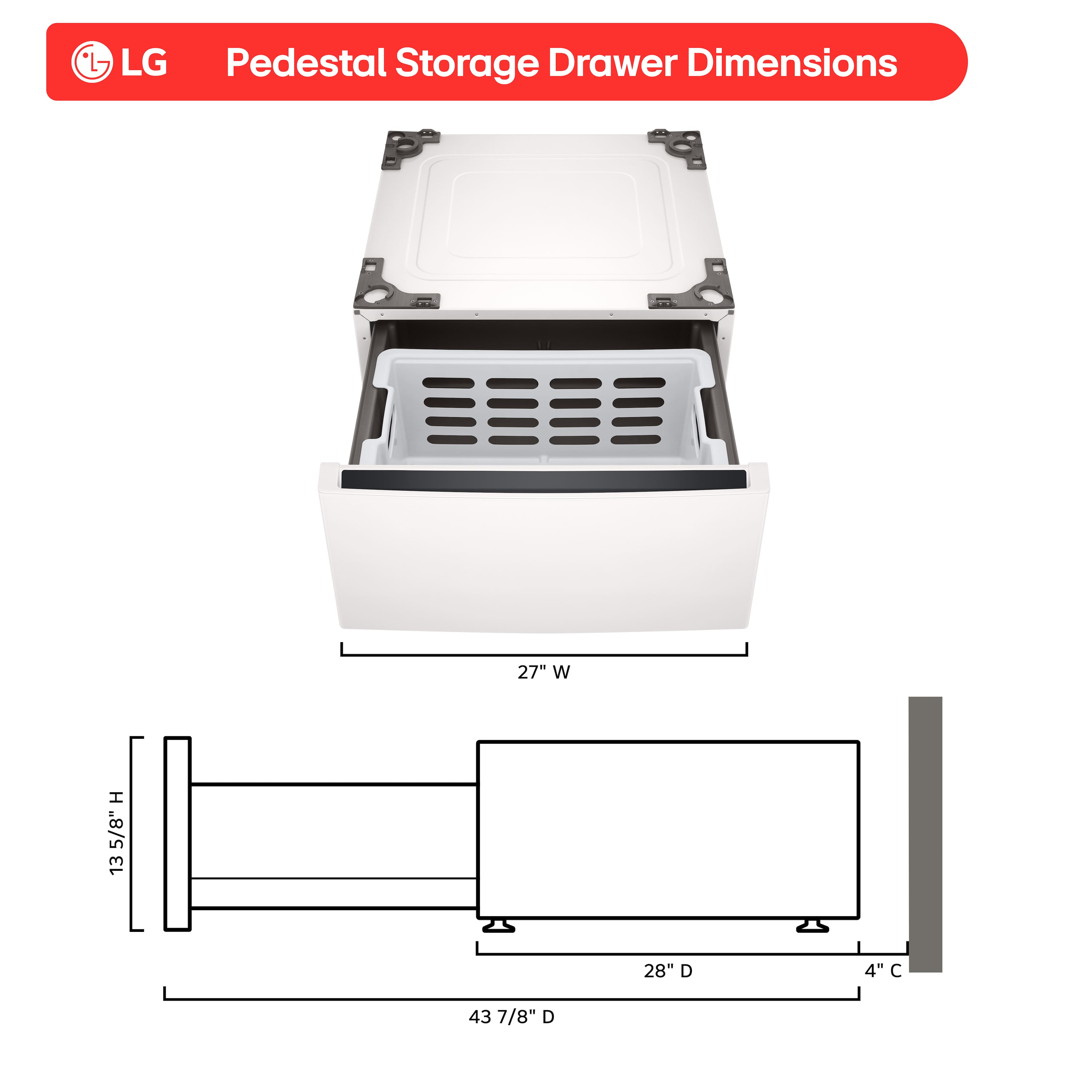 Pedestal offers lots of storage and the drawer is easily accessible. The elevation the pedestals provide is a nice improvement to easily load and unload laundry.