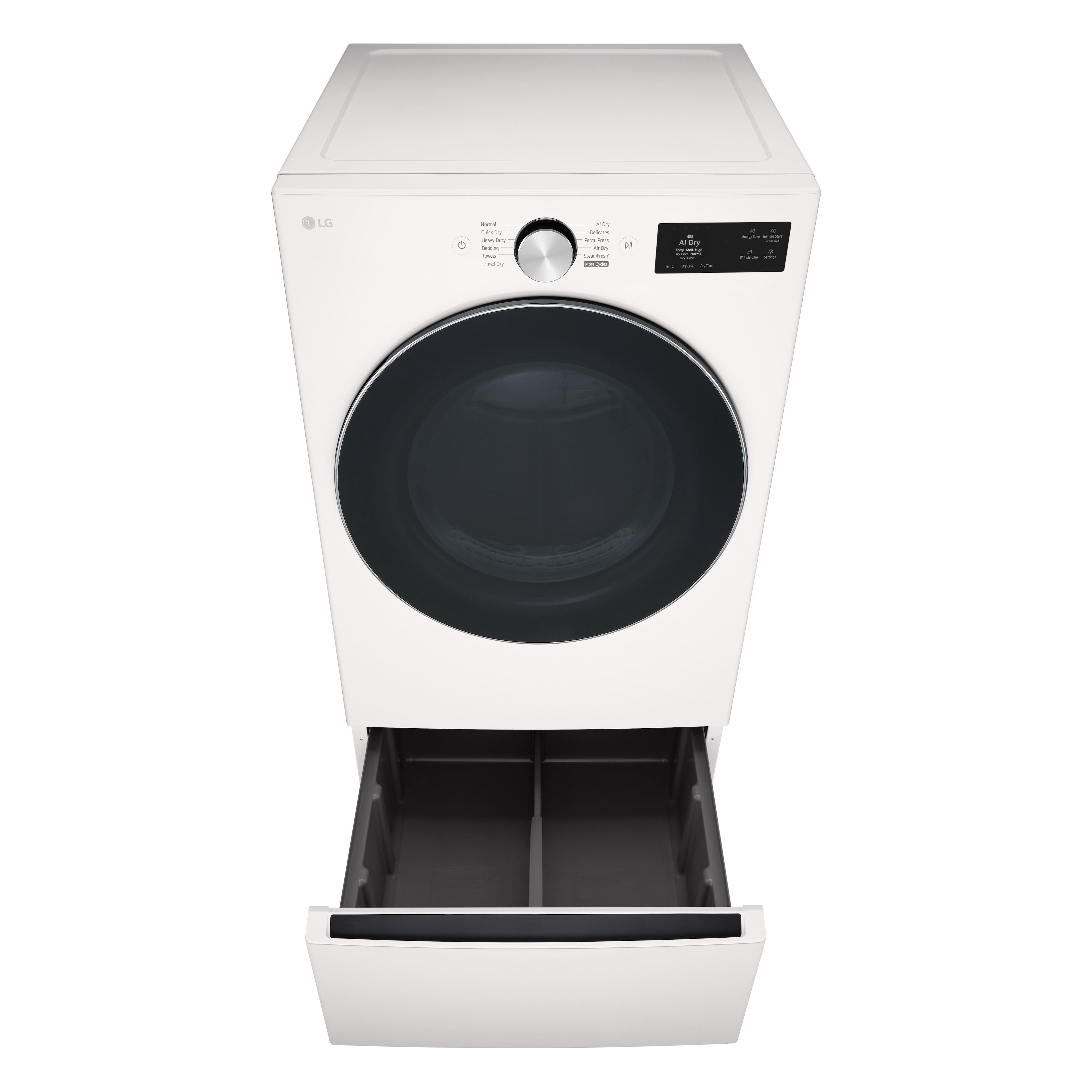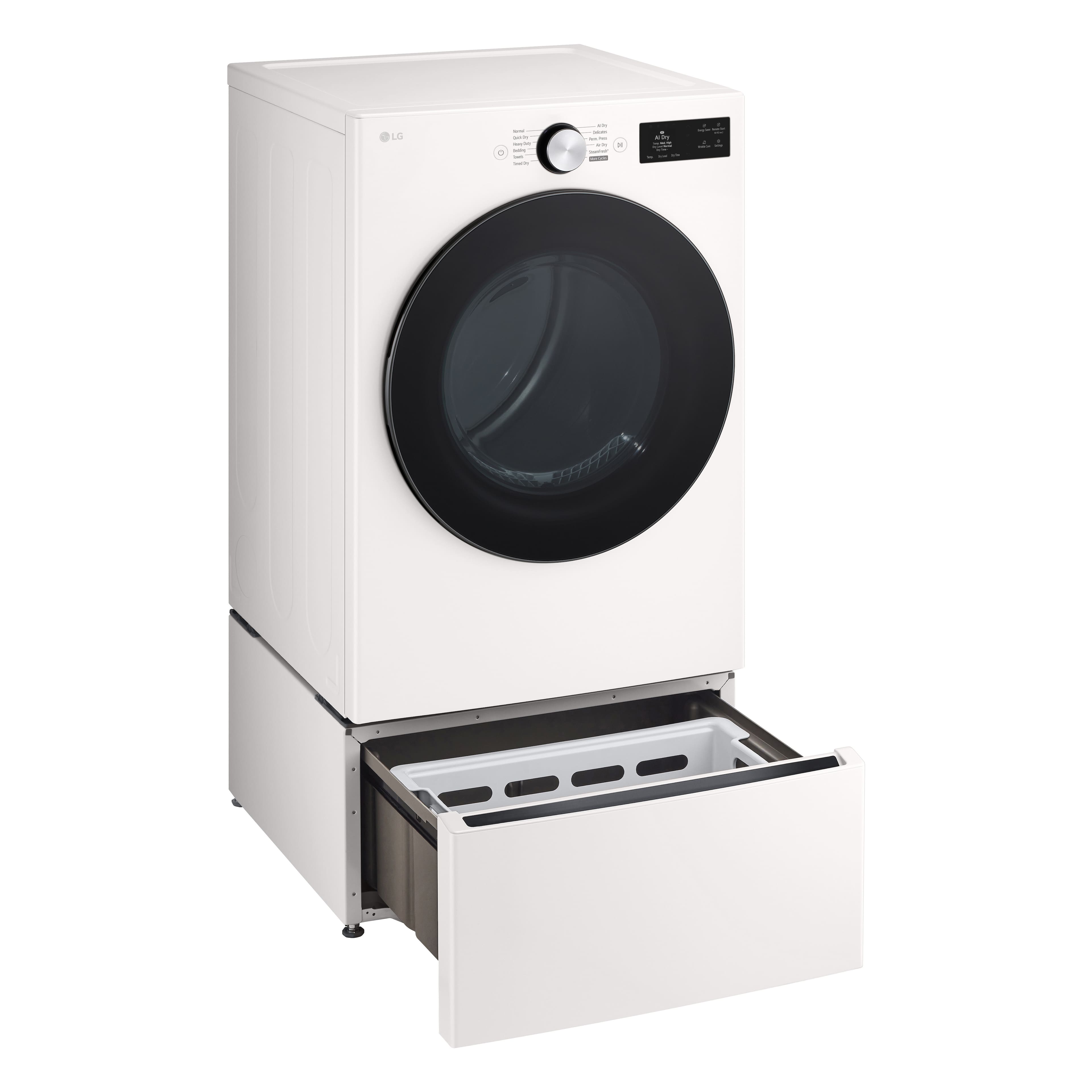 We needed a new washer, as our old LG washer was giving up the ghost, it would consistently give the dreaded IE error, and would not finish a load. We’ve never had a dryer, so we’ve always either hung the wash out on the clothes line, or on the drying rack. Clothes and especially towels would end up a bit rough. But on vacation we stayed where they had washers and dryers, and my wife loved how soft things ended up. So when we got home and our washer refused to finish a load, I researched washers, but especially washer/dryer combos. It seemed that there were basically 3 or 4 manufacturers that made them, and they all use a small heat pump to dry the clothes. Reading reviews on numerous sites, it became apparent that there were issues with lint clogging up the condensers, and looking at the actual lint filters on each machine it was easy to see why. Most of them used a slide in, slide out filter that really did not completely block the passage of lint, letting lint get by the filter and clogging up the condenser fins. I saw some owners trying to use a rubber gasket around the filter to block the passage of lint, but with very limited success, and the gasket would quickly be damaged by the plastic filter sliding in and out on it, so it would likely lose its effectiveness. Others would have to call for an expensive service call to come and disassemble the top of the machine to get at the condenser to clean it. And the process of removing the lint from the condenser fins was a difficult job at best, involving taking much of the top of the machine apart to get at the fins, and then running the risk of damaging the fins in the process of removing the lint from them. None of these options are ideal. But the lint filter in the LG washer/dryer combo was different. Instead of a slide in, slide out rack, it has a 2 stage filter on the top of the machine that snaps in and out, with no spaces around it to allow lint to get around the filter, and end up clogging up the condenser fins. And the filter has 2 stages. The main filter that you pop out and clean after each wash, is the first line of defense, and the second stage is easy to keep an eye on, so you can snap that out to clean in case any lint gets by the main filter. Then between the filter and the condenser fins there is a small screen that you can pop out by removing one screw to remove it, then allowing easy access to vacuum off the condenser fins with a soft vacuuming brush to remove any possible lint that might conceivably get by the 2 filters. I think this is a much better lint filter system that the others. And that is why we bought the LG washer/dryer combo. So far it has worked very well. Yes, using it is a bit different than using a typical separate washer and dryer. We bought 6 wool dryer balls that help any dryer do better, including this one. We have found that it typically takes about 2 1/2 hours to do a wash and dry load, depending on what we are washing and drying. At first that sounds like a long time, but consider: that time involves washing and drying. I’m not sure how long washing and drying using 2 separate machines takes, as in the past, we’ve only used a washer, no dryer. But I’d be willing to guess that most separate washing, then switching the laundry to drying probably takes about the same amount of time as this one does, without our having to switch the laundry from one machine to the other. And as I said, using a washer/dryer combo machine is a bit different process than 2 separate stand alone machines. We were careful to read the user manual and follow LG’s guidance for what will work best. We use a small amount of HE liquid laundry detergent. We personally decided to not use the detergent dispenser, it’s just another thing we’d have to periodically clean, so we just place a small capful of detergent in each wash load. And because we have our own septic system, we don’t use bleach, and we don’t use dryer sheets. We use wool dryer balls to help the dryer do a good job. We separate our wash loads by type of laundry load. We clean the lint filter after each load. We leave the door open between loads to let it dry out and help prevent any mildew or musty smells. But that’s about it. It’s not difficult, it’s actually pretty easy, it’s maybe just different than what we might have been used to. But so far, we like it, my wife loves how soft everything comes out. The pedestal lifts the washer to give easier access.