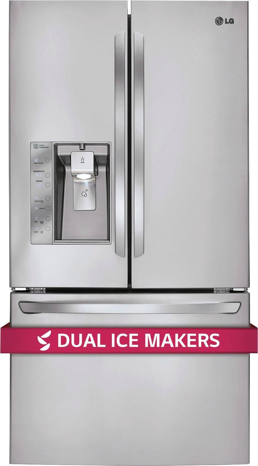 I purchased the LG fridge in July after having a side by side since 2004. I love the french door design and extra space. There is so much space in this fridge and freezer. To me the best part of this fridge is definitely the double ice maker. The door ice maker always has ice and the ice tray in the freezer fills very quickly. So far, this is an amazing fridge!