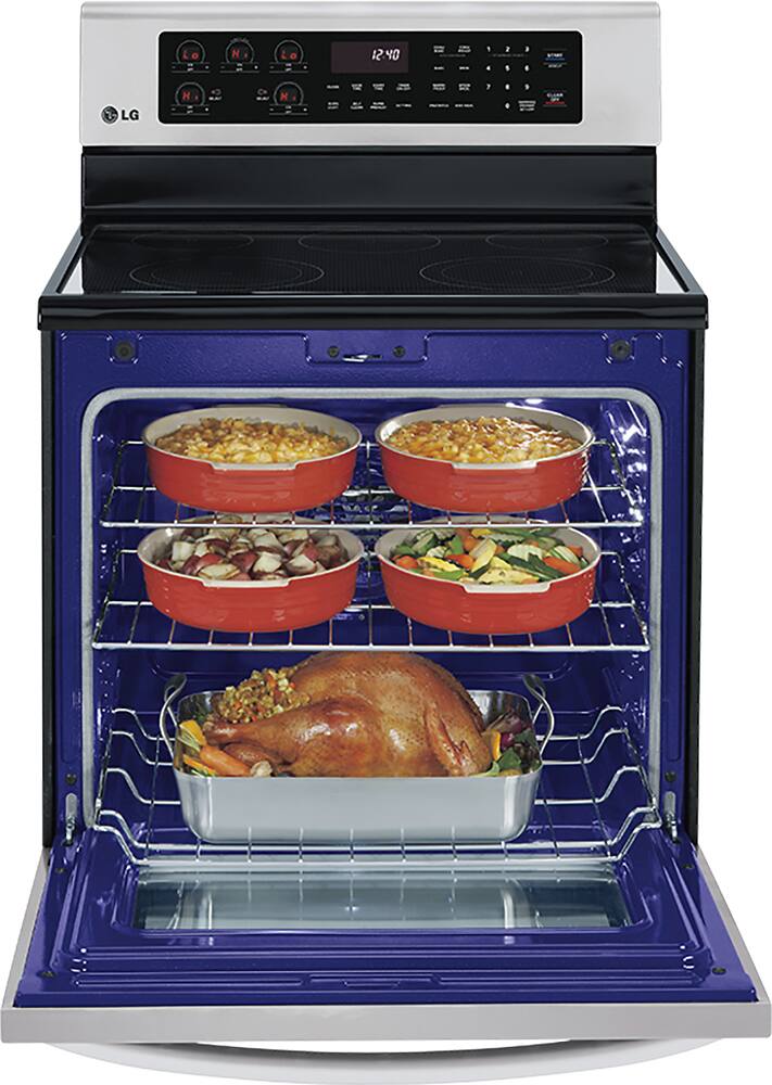 When shopping for all new kitchen appliances, I decided on the LG brand because of looks and features. After about one week, I needed to clean the interior because a pie ran over. After running the easy clean cycle, I noticed that some of the porcelain inside had popped off. Since I had purchased the extended warranty I contacted LG first and they told me that the finish was NOT under warranty. I could not believe that. They didn't even want to send someone out to check it out. I then called Bestbuy and they told me the same thing. I was pretty upset with a 1200.00 range. Best buy finally agreed to ship me another range. I used the Convection Roast for a whole chicken and it browned the chicken so dark, I had to take it out and the inside was not cooked well. I will probably use the Convection Bake for meats next time. I haven't had it long so I guess I will have to experiment with convection cooking. As far as the digital controls, I don't think I like the touch pad for burners. Reaching over hot cooking pots to adjust the temperature is not good. It takes more time to adjust the temps than with a knob. In the past, I have had trouble with LG appliances like laundry machines. LG does not stand behind their appliances like they should . I had 4 service calls on the washer in the first 4 yrs. Dryer does not dry good. Be sure to purchase the extended warrantees on appliances. Best Buy came through with me on this one.