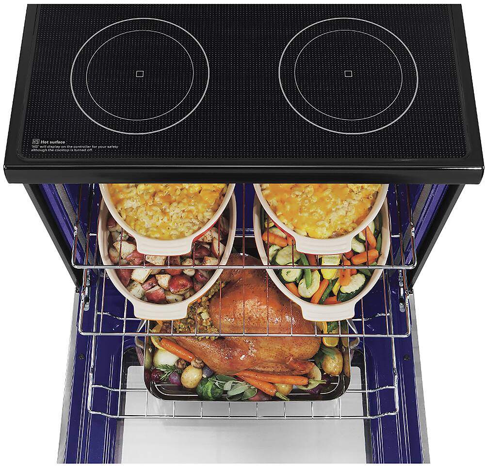 This is one great stove/oven. I cooks great. Now I am finally understanding the convention cooking. Family was visiting it was great having 3 racks for doing pizza. I love the blue interior.