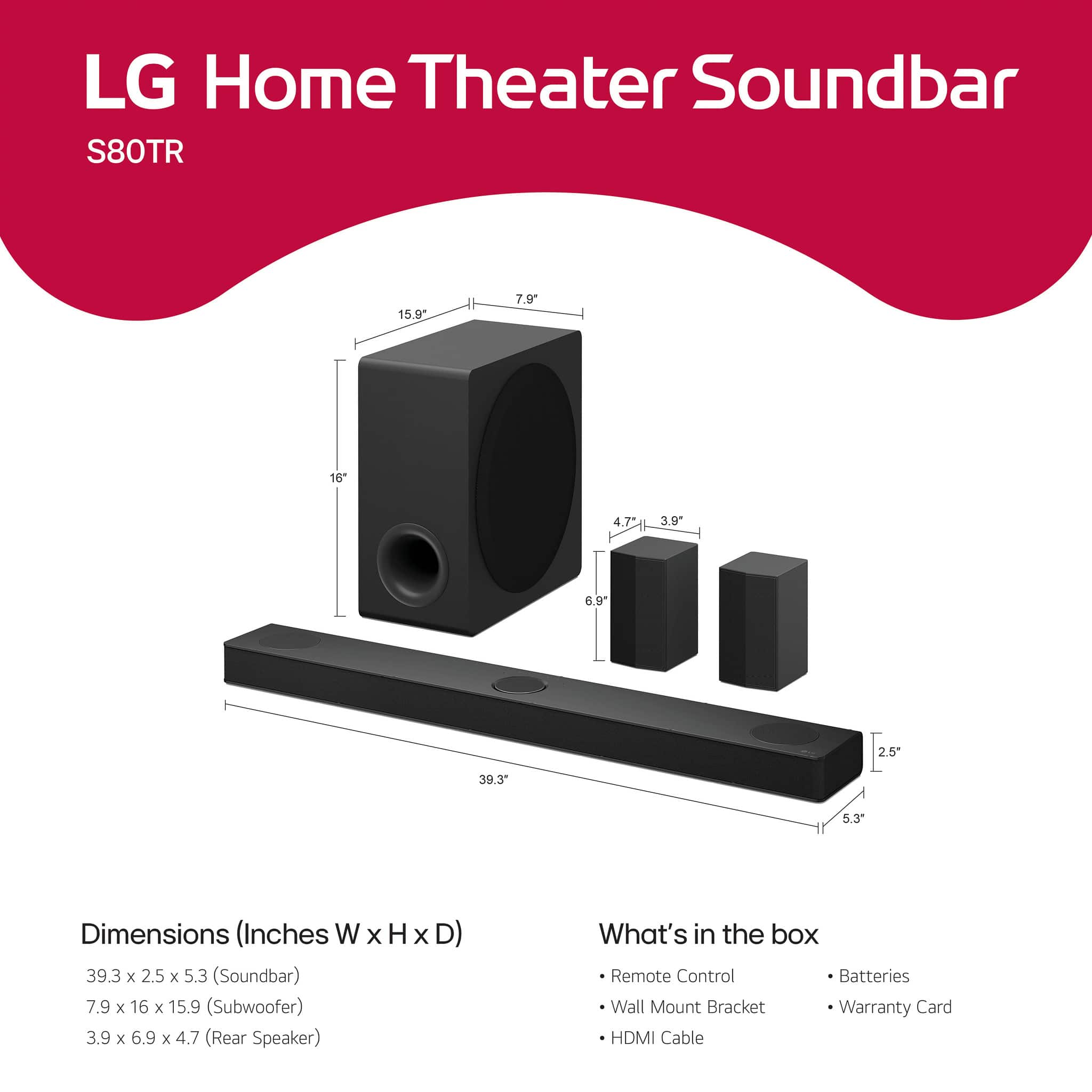 This LG soundbar exceeded my expectations. The sound is powerful and immersive, especially with the rear speakers and subwoofer—it truly feels like a movie theater at home. Setup was simple, and the design is sleek and modern. The Dolby Atmos and surround effects are noticeable and make a huge difference when watching action scenes or listening to music. Definitely worth the investment if you want to upgrade your home entertainment system!