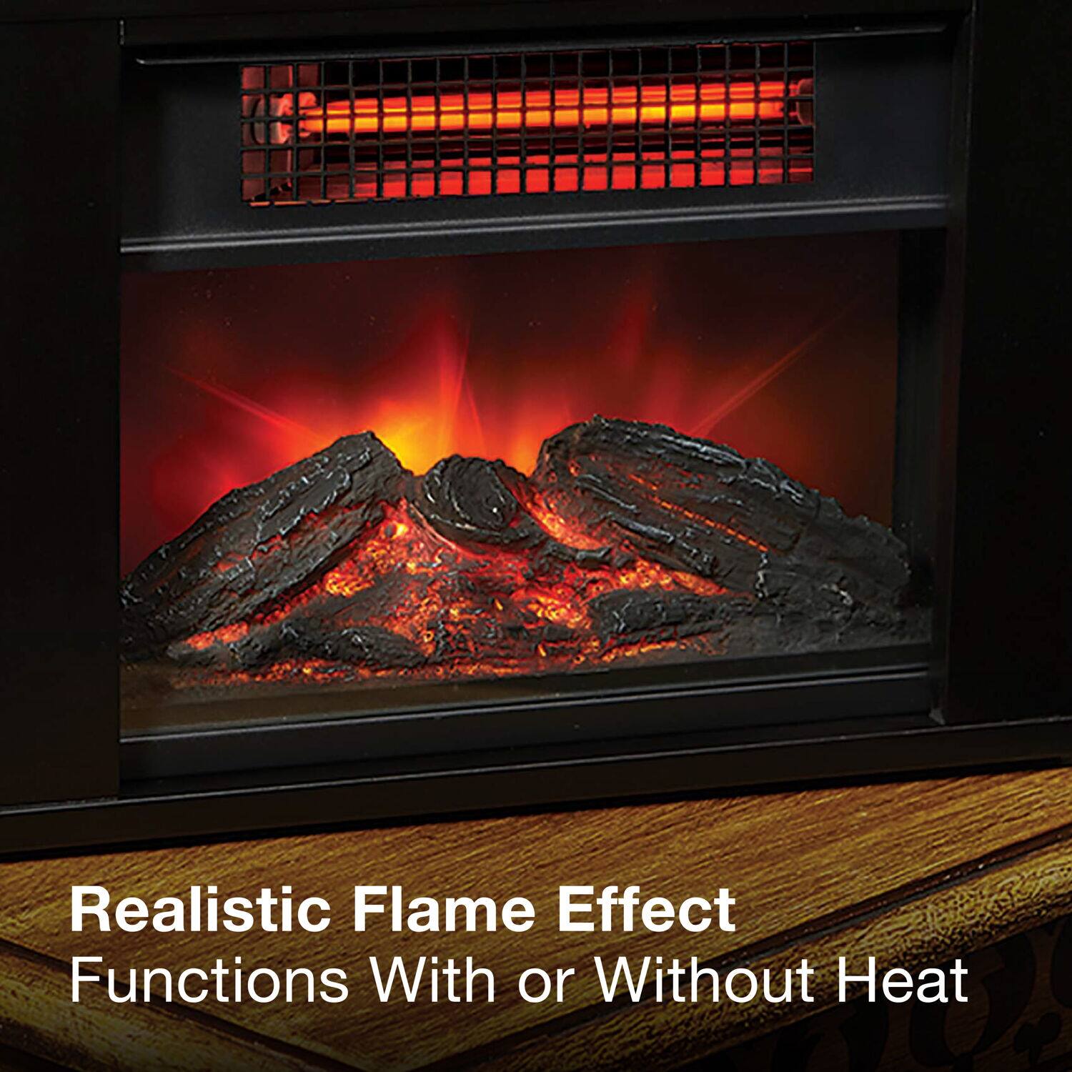 For an electric fireplace, it has a nice looking flame effect and burning wood & the size is (for us) Perfect. It sits nicely on a table or anywhere. BUT the lamination on front/top began heating & rippling within the 1st week of use.