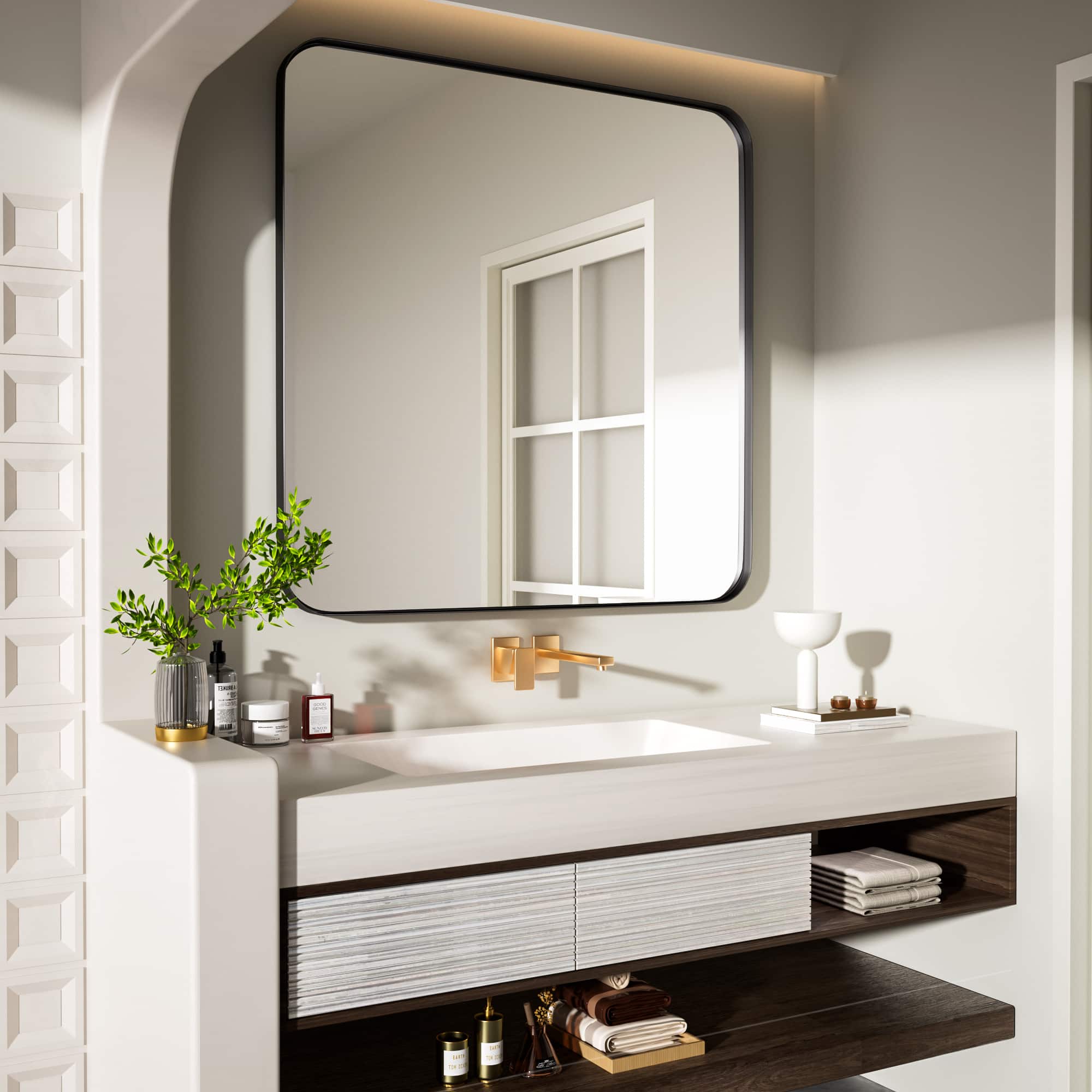 This review is from LOVMOR - Tempered Glass Rounded Rectangle Framed Wall-Mounted Bathroom Vanity Mirror - 36" x 36" - Silver