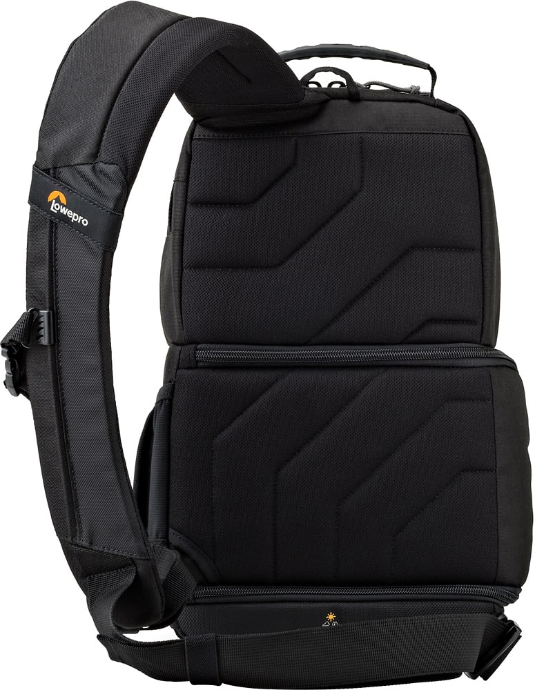 Sturdy bag, good padding. Takes a bit to get used to sling style if used to back pack style.