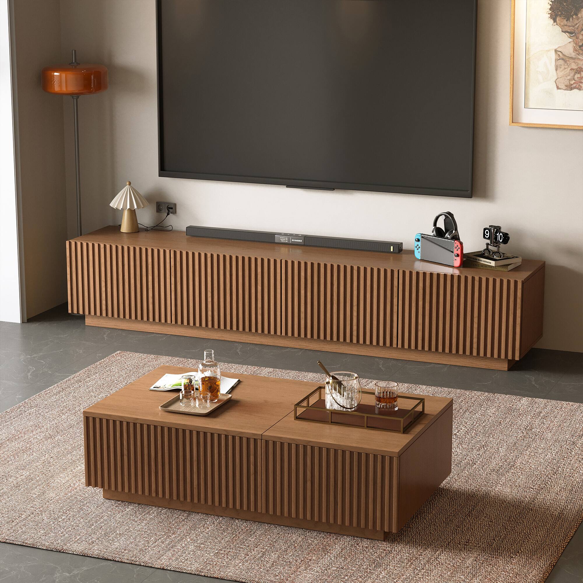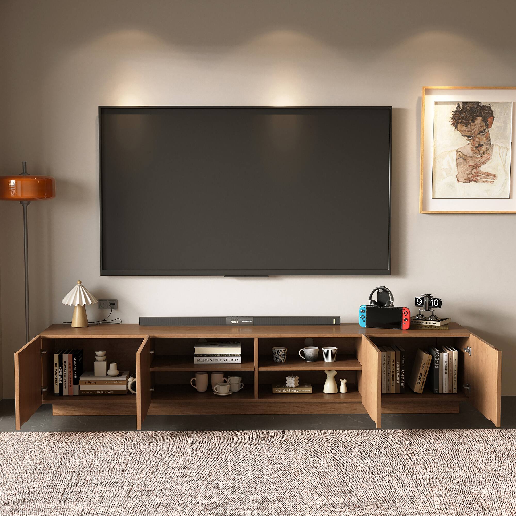 Awesome TV stand. It's a stylish light wood color. We love it.