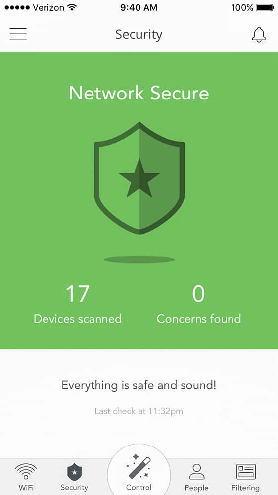 Excellent security and easy to configure. No more wireless dead spots. The app lets you view and manage the devices connected to the internet.
