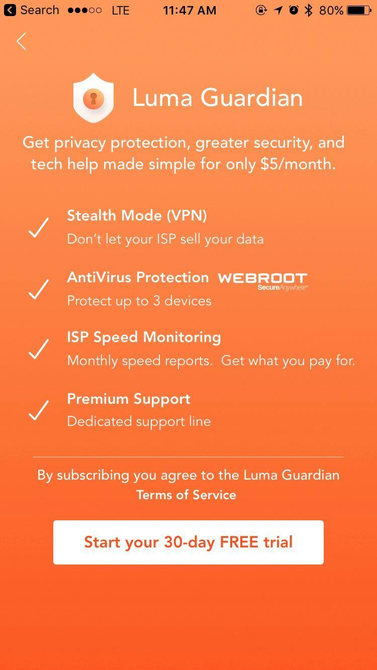 We love Luma, it is great, so easy and fast to install. Our internet is fast and safe again. Luma price and ease of use can't be beat.