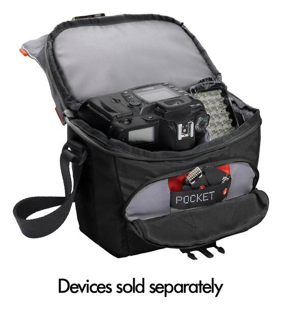 I honestly went into Best Buy to look at another camera bag, but I found this Manfrotto bag and bought it instead. It's perfect - I love the closure and zippers that keep everything secure yet easily accessible. And the padding inside with the Velcro divider piece securely hold my camera and accessories. Definitely recommend this bag.