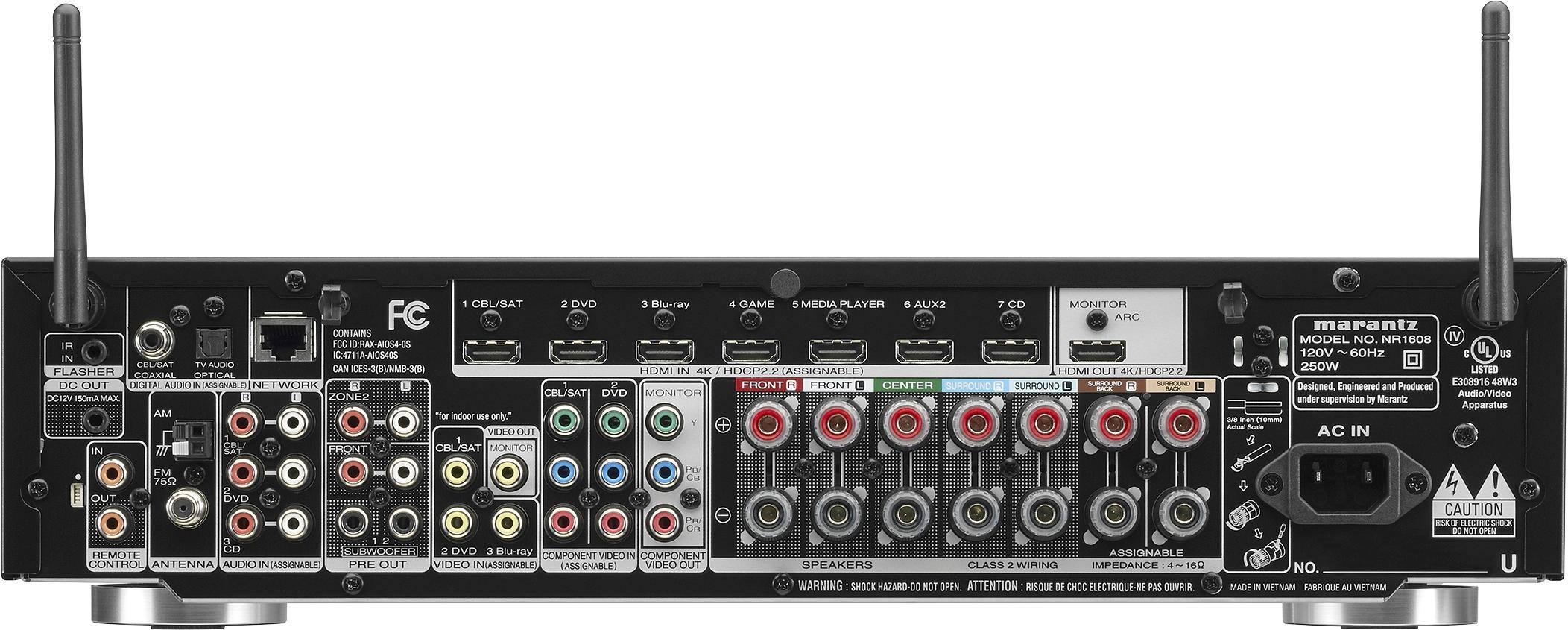 Right out of the box, Marantz has created a beautiful compact receiver that is not only aesthetically beautiful but functional. It had more than enough hdmi ports for all your needs... and wait for it... Dolby Atmos. Connect this to your home theatre speakers and boom! Awesomely astounding sound. This is enough for a small room, 12 x 15, don’t know if you will ever crank it up to more than 50 Watts... who knows. I’m happy listening and experiencing movies as they should..