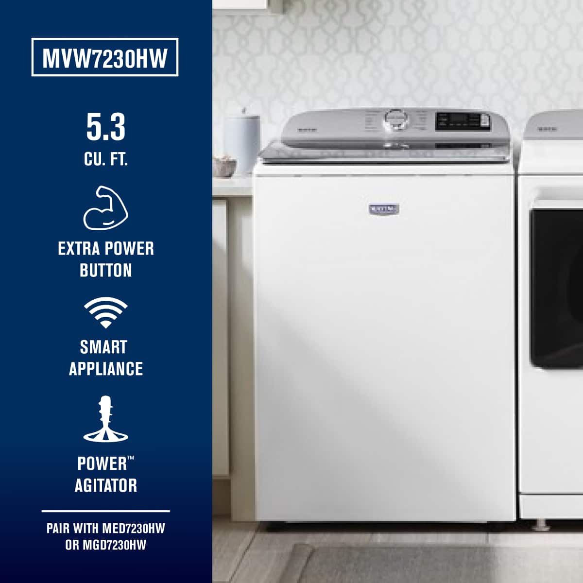 This top loader Maytag washer with the agitator does a good job. It’s 5.2 Cu Ft, slightly smaller than the 5.3 Cu Ft washer without an agitator that we really wanted, but that was out of stock without any realistic assessment of when it would be back in stock. This one got much better reviews anyways, so here we are. We really have been completely satisfied with it. The capacity is huge and it cleans well. I love how it squeezes the water out of the towels during the high speed spin cycle. They are so much dryer than our older Maytag washer, that does not have the high speed spin cycle.