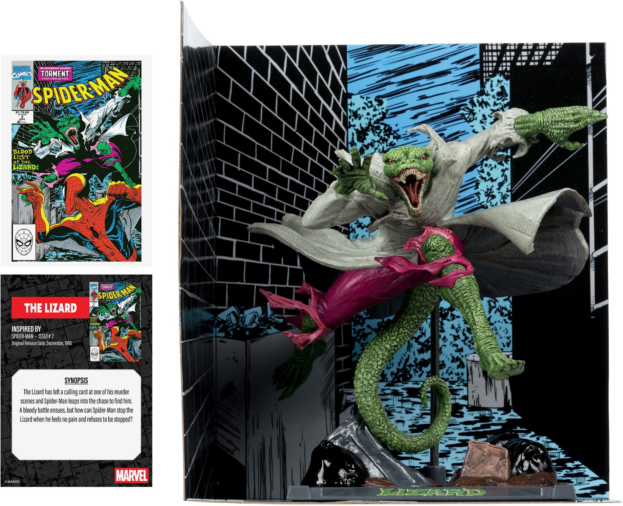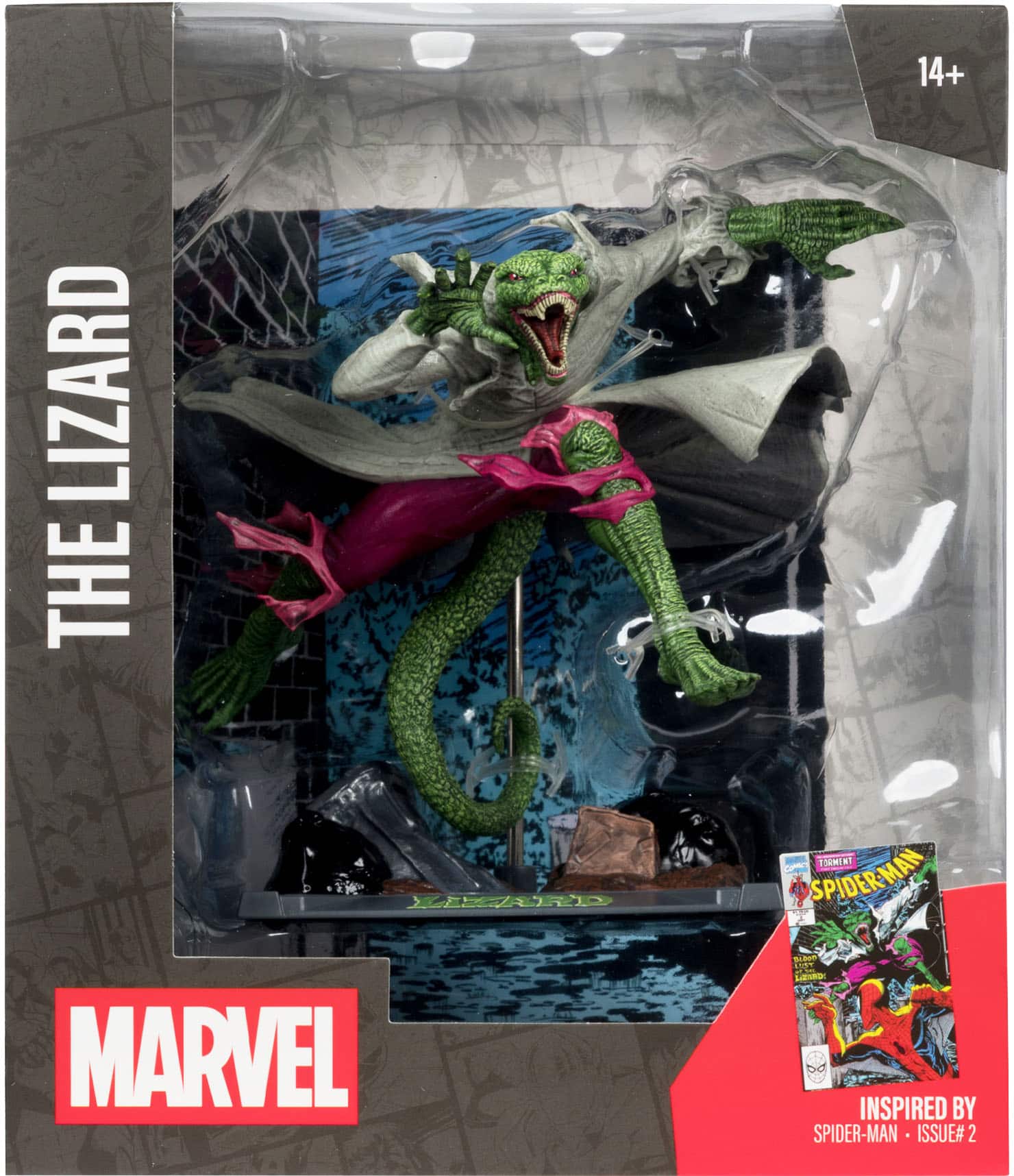 Very cool Lizard figurine straight out of the Todd McFarlane Spider-Man comic series. Looks like he’s jumping right out of the box!
