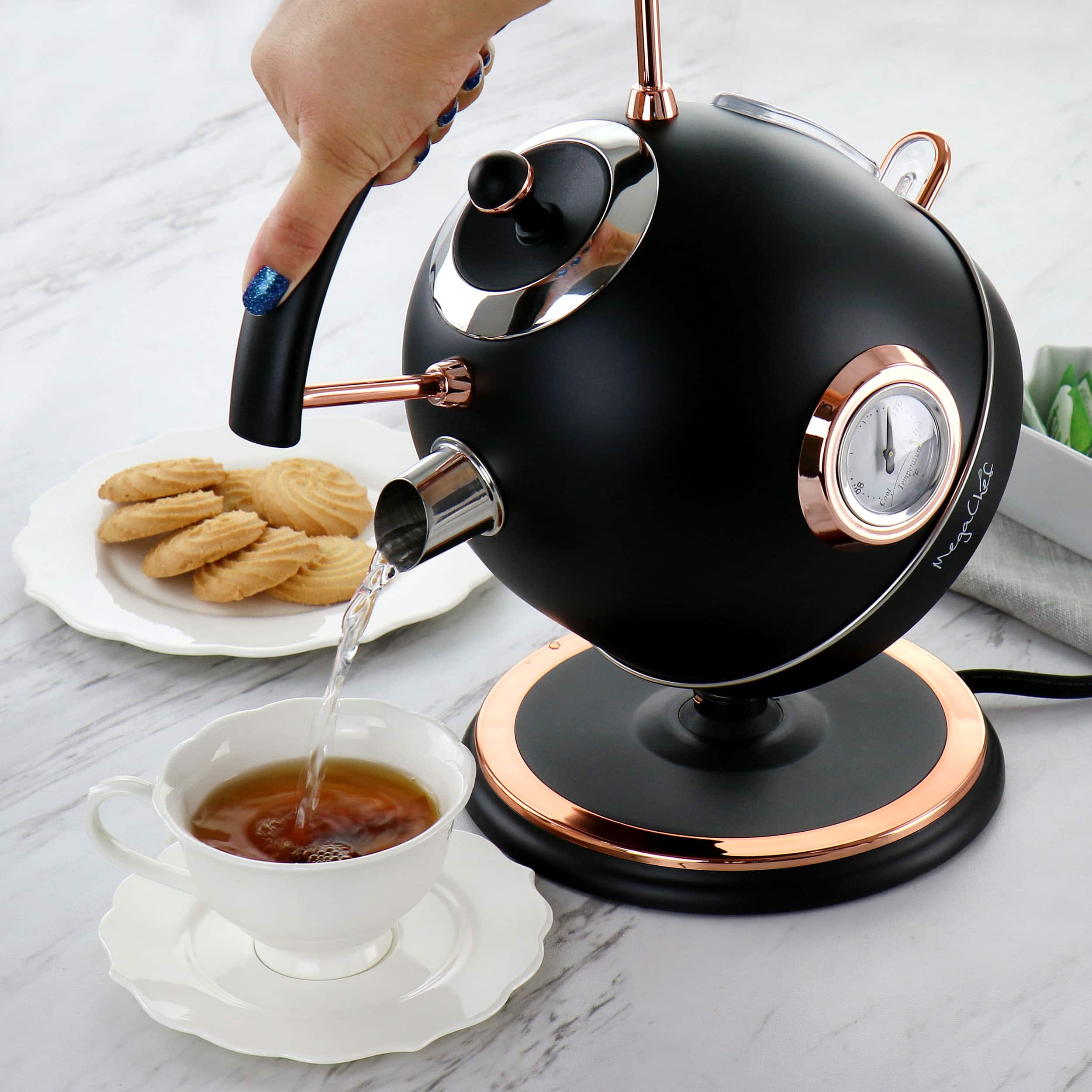 Really needed a kettle, and this one stood out. The look is sleek, and the quality is great. It's really easy to use and the water gets hot!! The feature I really like is the auto cut-off. I would have liked some sort of cap on the spout; other than that, this MegaChef Tea Kettle is awesome!!!