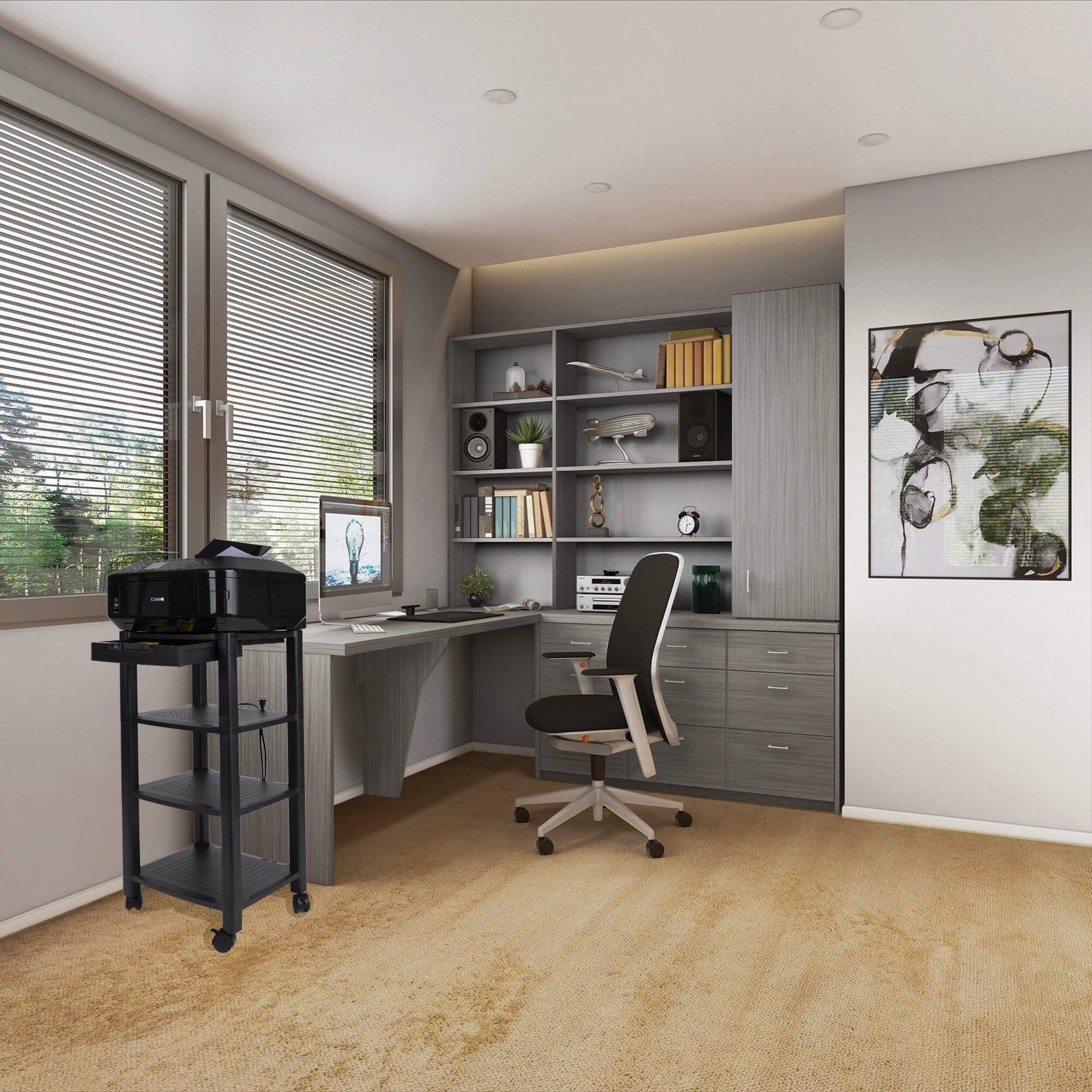 Customers are impressed with the sturdiness of the 4-Shelf Printer Cart with Wheels. They find it very sturdy and handy, making it easy to move around.