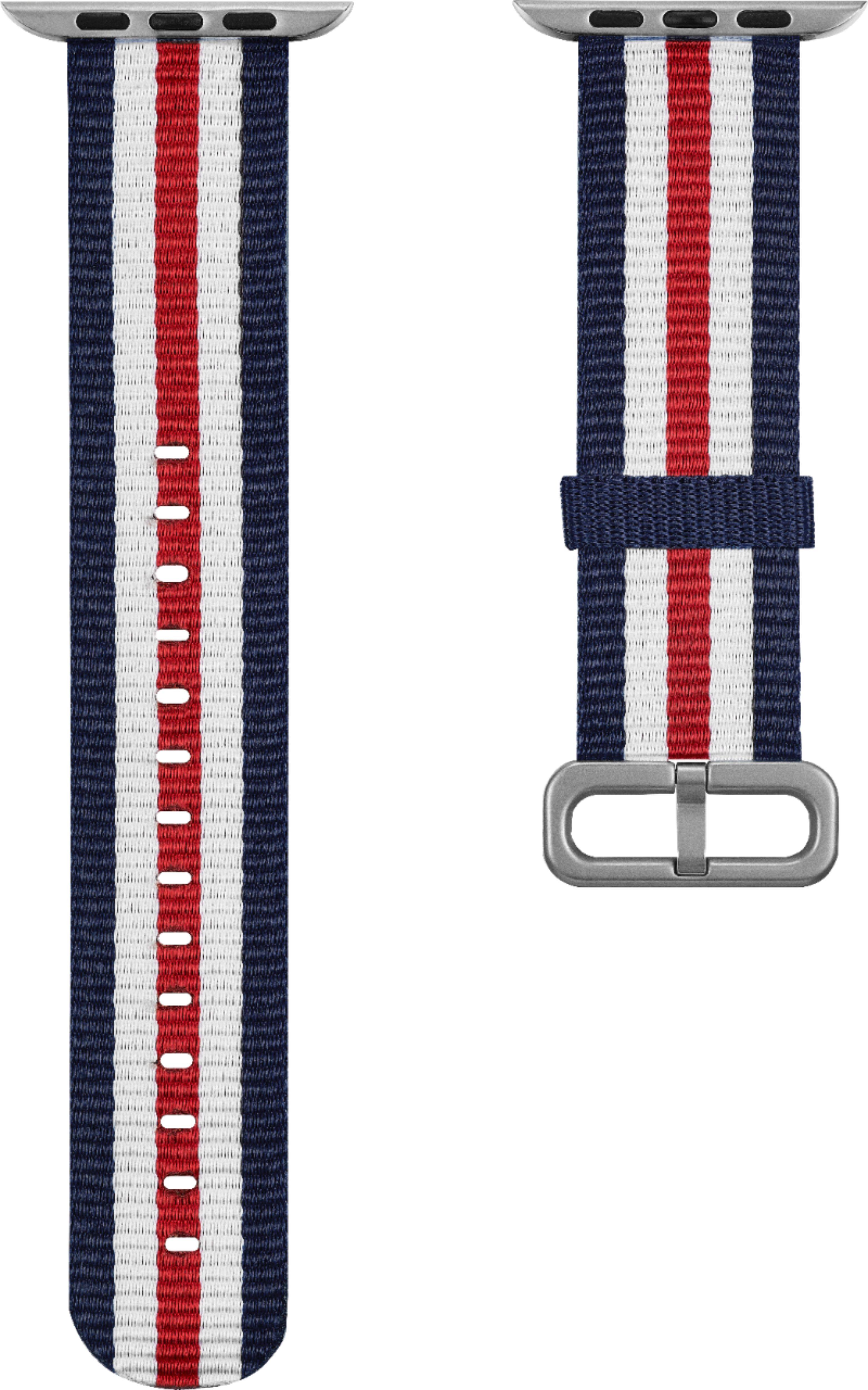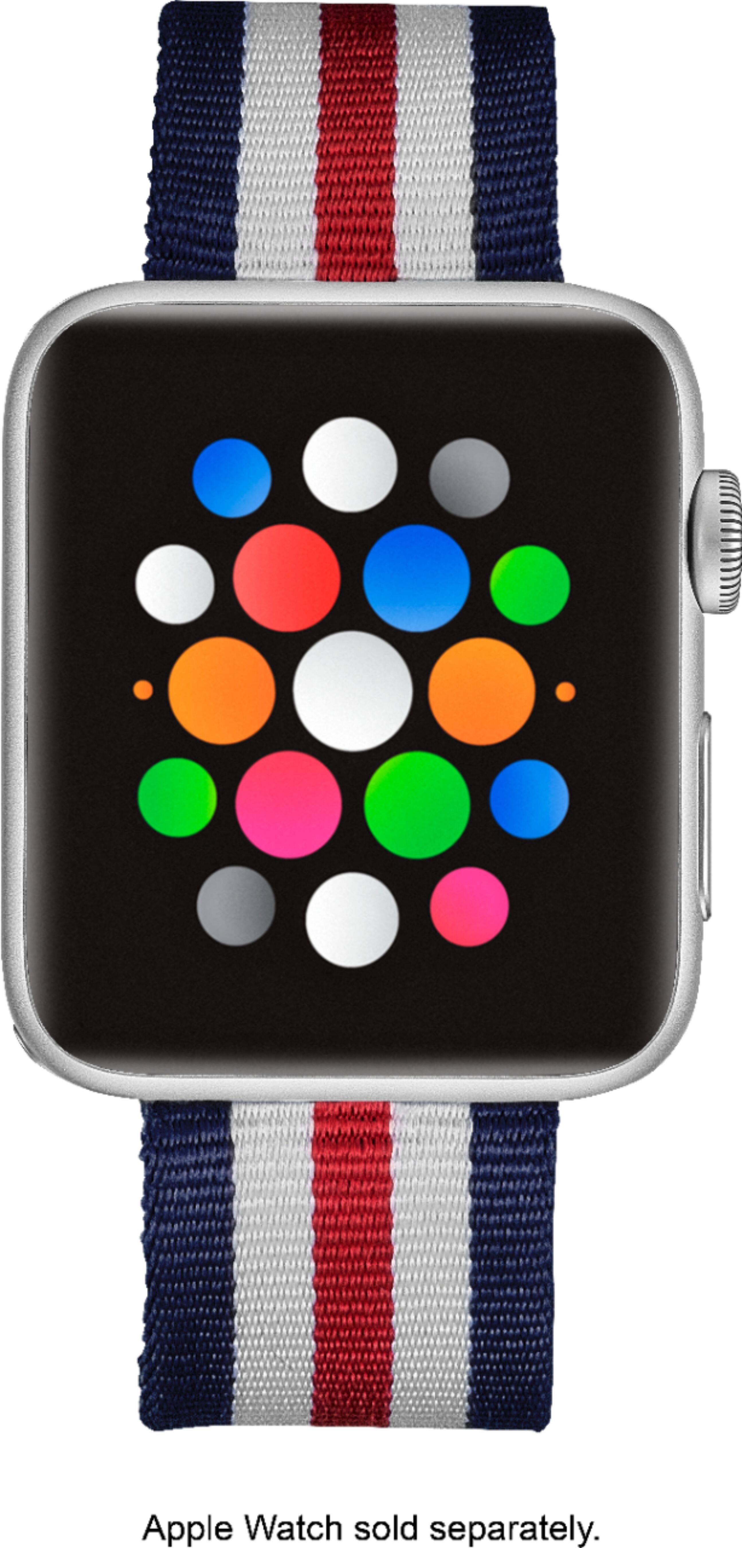 This band fits my Apple Series 4 watch although probably better on the series 1, 2 or 3. The price was fantastic enough that I can wear it just on Memorial Day and Independence Day. I prefer the Milanese watch bands because of ease of putting on, taking off and comfort. But this band is fine for 2 holidays per year.