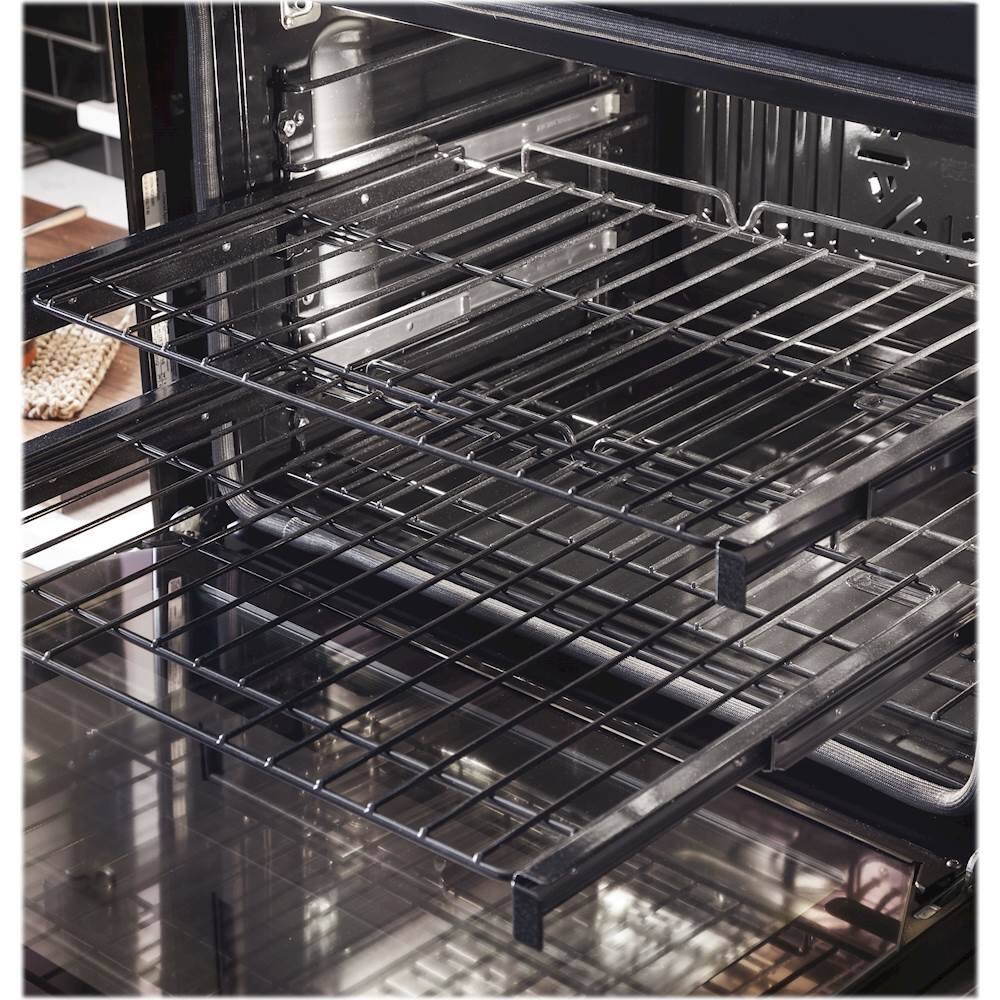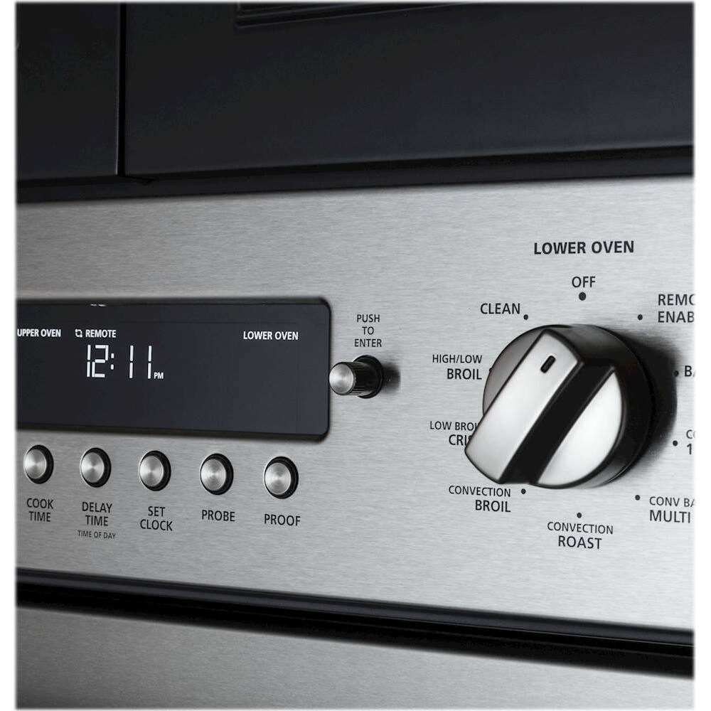 This is a double oven. both have the same features which include Convection. bake, regular bake, stemclean and self clean, bread proof, keep warm, Racks can be left in for self clean cycle. it is very nice looking.