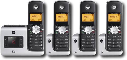 The Motorola L404 DECT 6.0 cordless phones with stylish handset, great value and easy to use answering system with message counter. Features include: Interference free digital technology,3-line backlit display, clock, and call waiting caller ID. The answering machine gives you remote access to messages and the ability to leave audio memos for family members. The cordless phone requires only one phone jack and has a range of up to 160 feet indoors and 980 feet outdoors.