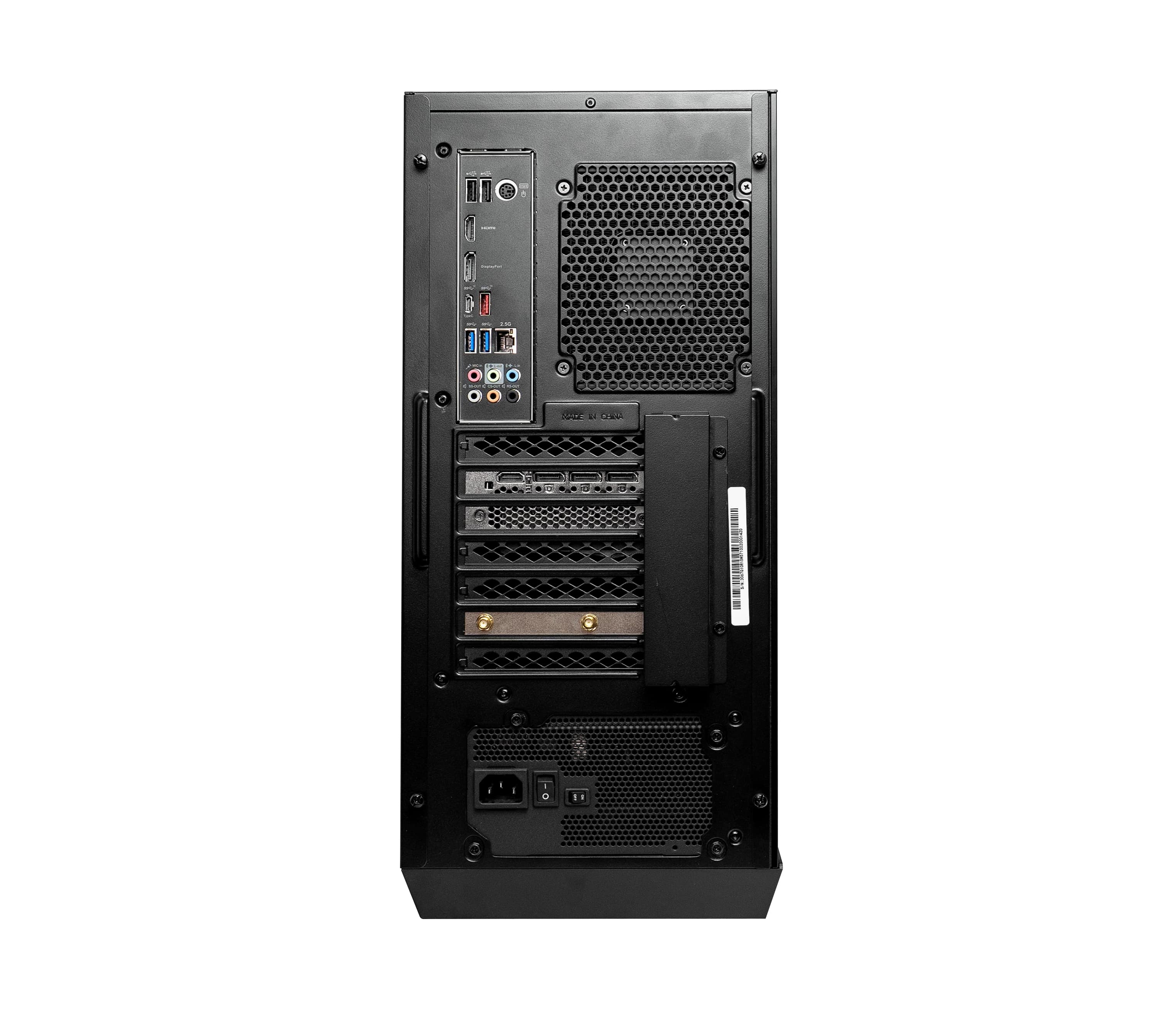 Note that as I write this, the photos in the product listing are of the higher-end model with liquid cooling and a different rear panel. This model is air-cooled and has a different arrangement of ports on the back. That said, the stock cooling system seems perfectly sufficient. The case otherwise looks the same.