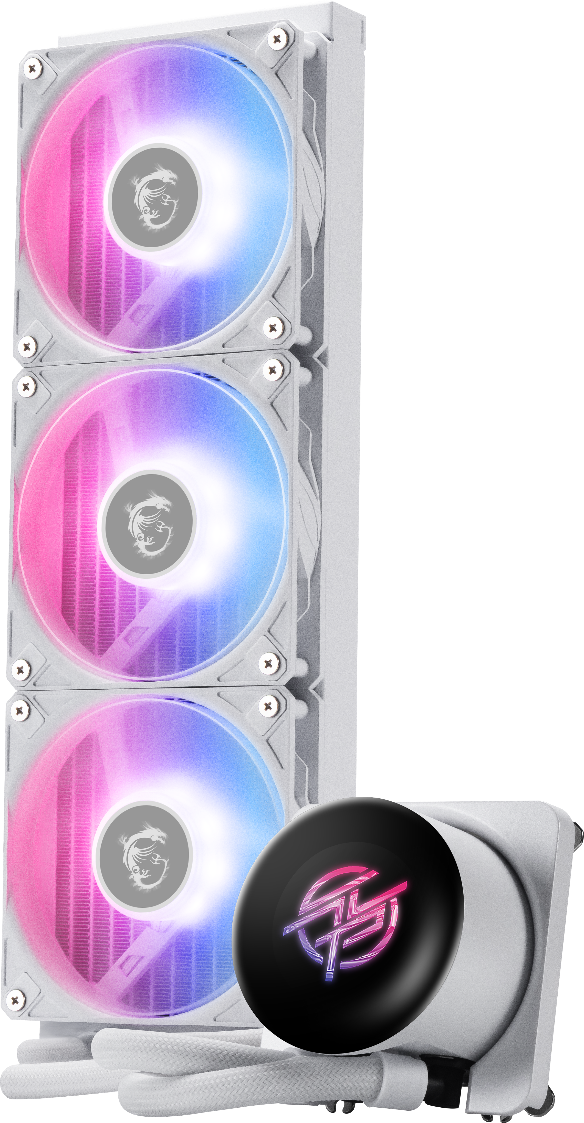 The MPG CORELIQUID P13 360 pairs strong cooling performance from its 360mm radiator and triple 120mm PWM fans with an eye-catching IPS 2.1" LCD for customization. The Uni Bracket makes installation tidy and straightforward, and the white finish plus ARGB lighting gives a clean, premium look. Quiet under load and excellent for high-end builds—great pick if you want performance with flair.