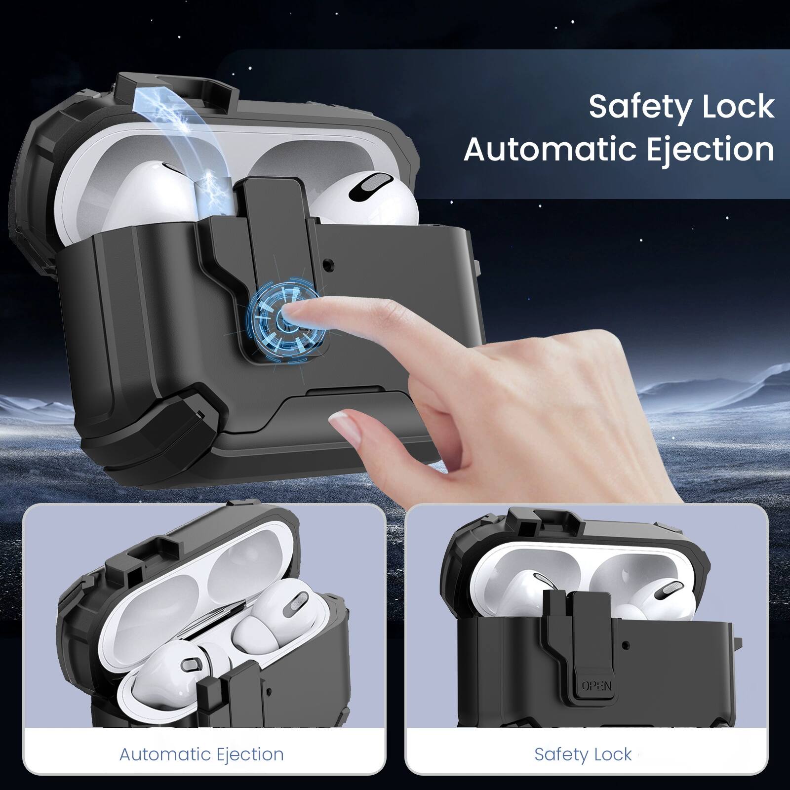 I purchased the Mybat Pro SafeSound Magnetic Locking Case for AirPods Pro 3 (Model MBP-APP3-BK) from Best Buy. The top part came off, but the bottom shell is stuck extremely tight around my AirPods Pro 3 charging case. There is no opening at the bottom to push it out, and if I try to apply even a little force, it feels like it may damage the AirPods case.