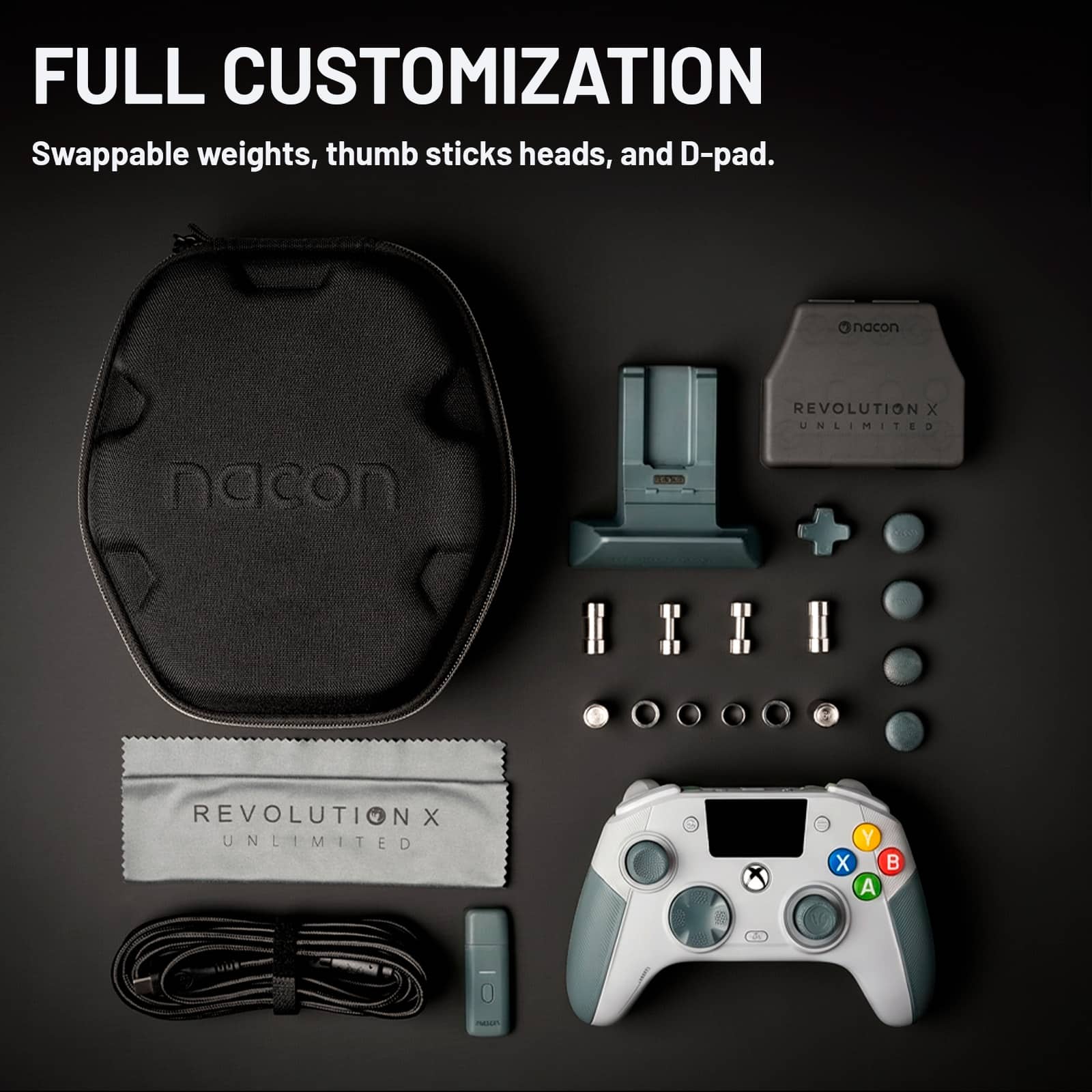 - Extensive physical customization with swappable stick heads, D-pads, rings, and adjustable weights
