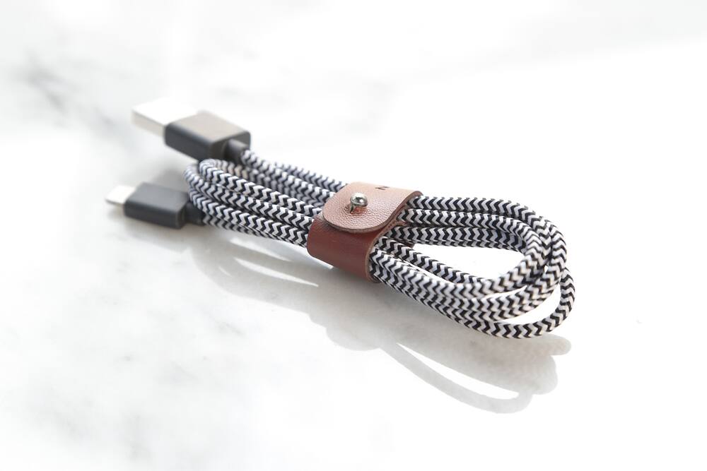 The material provides durability and the adjustable leather strap keeps the lightning cable in place for storage and on-the-go.