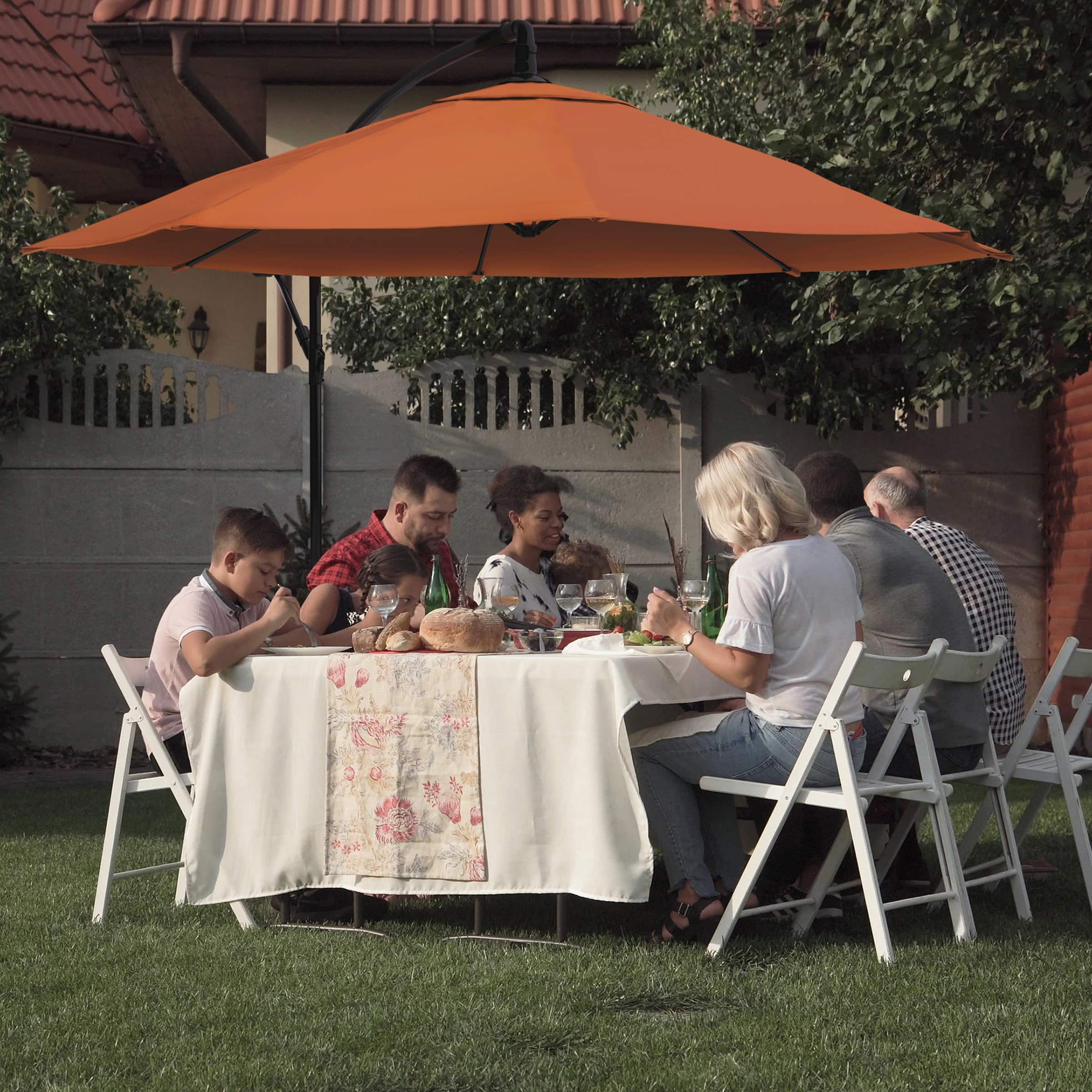 This umbrella is good and easy to assemble and use. It is big, too. So, it covers a decent area. Just make sure you buy a good base for it!