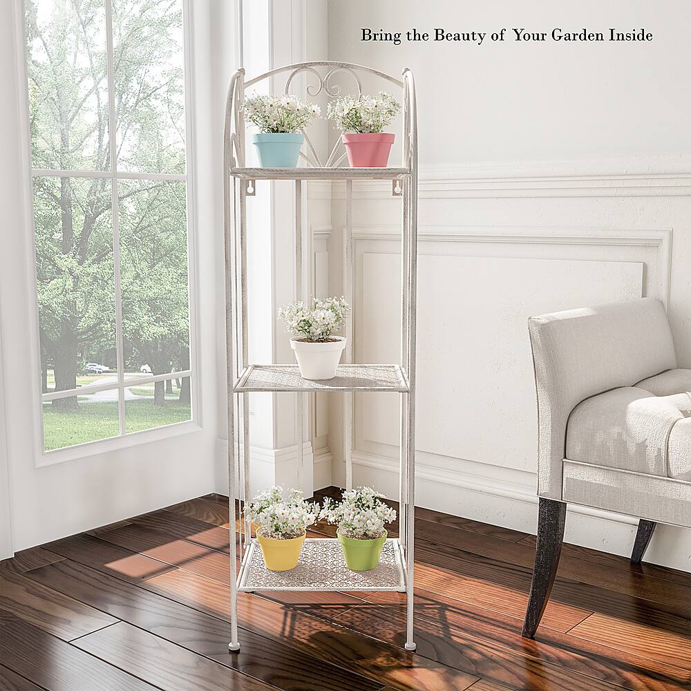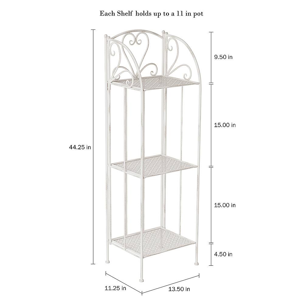 I love it. It looks exactly like it dud in the picture, it was packaged well, arrived within dates promised and was easy to open and unfold. The shelves have a enough room for one medium size plant or two smaller plants. I currently have my succulents and herbs on them. I will bring my plants in fir the winter snd this shelve will work beautifully inside with my decor.