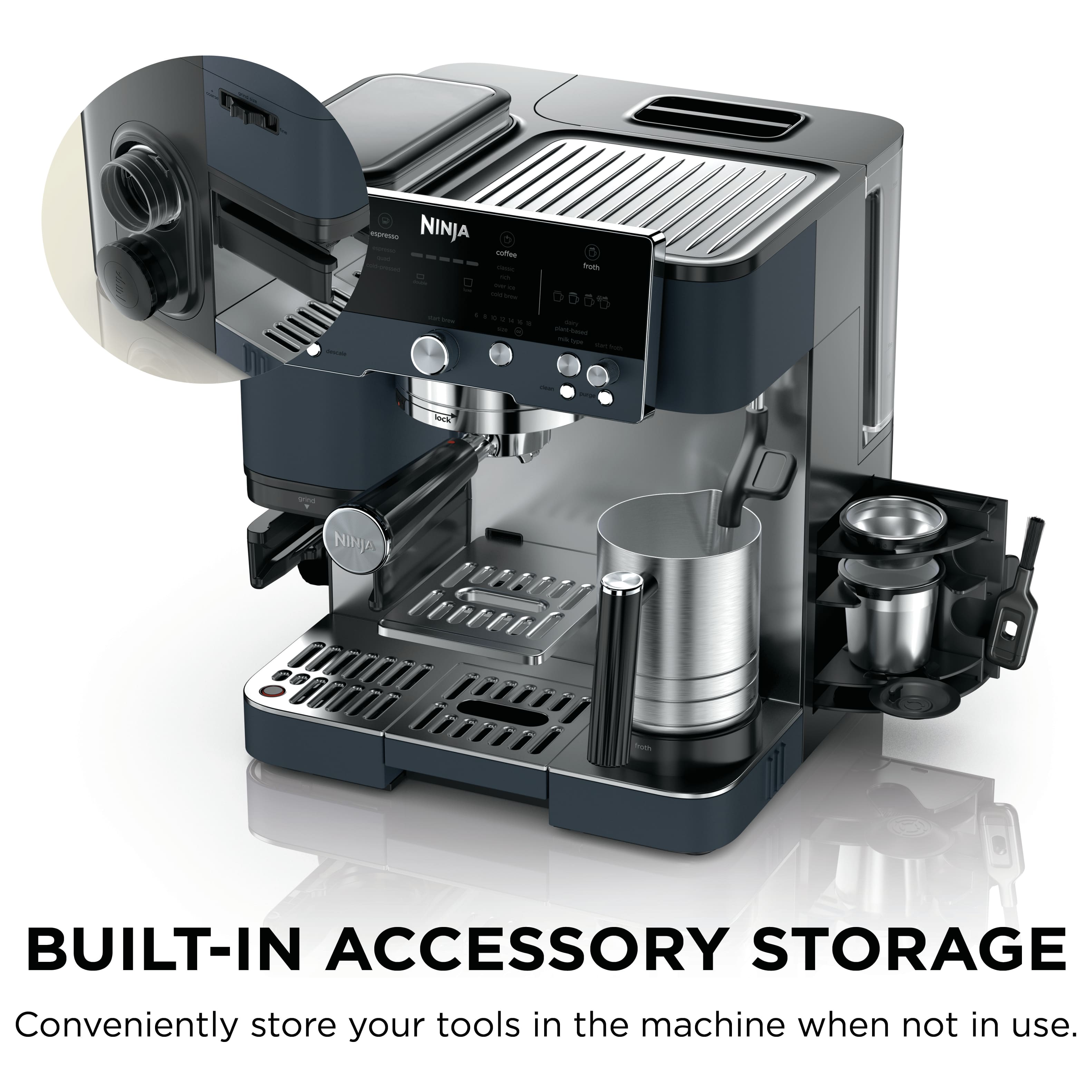 |Posted .This reviewer received promo considerations or sweepstakes entry for writing a review.I hope Luxe becomes a new product line from Ninja, because this espresso machine makes a great brew and has the fit and finish of much more expensive ones. Design wise, it has the elegance of classic chrome espresso machines with digital elements nicely blended in. The rotary dials and buttons have a solid stiffness to them and all of the metal elements have a sturdy weight and feel. Turning the portafilter all of the way into the locked position seems a little too stiff though. I know it should be tight, but I have to hold the machine down with one hand while I turn the portafilter handle with the other or else I’ll turn the whole machine. That’s really the only knock on it, but I’m hoping it’ll loosen up as I use it more and it breaks in. I love the integrated storage compartments for the tamper, funnel, basket and cleaning brush. It means I don’t need to find a special place to keep them and are therefore much less likely to get lost. But where this machine really shines is the coffee (and auto frother!). BREWS The espresso is strong and flavorful with options for a single, quad, and cold-pressed. It produces a nice crema with Lavazza espresso beans, but those aren’t my favorite beans so I’m looking forward to trying others. The bean hopper is removable for easy cleaning and it makes it easy to dump and swap out the beans early if I really wanted to. On the coffee end of the spectrum the brews available are classic, rich, over ice, and cold brew. I especially like the cold brew during this heatwave which goes great over ice. There’s even a cold frothing option which works astoundingly well and adds a great texture over an iced cold brew. I will warn you that while the coffee and espresso is outstanding, be prepared to go through beans quickly. Apparently it takes a lot of grounds to make a quality brew, but it’s well worth it. If you like your cappuccinos or lattes, or just foam, you’ll appreciate the milk jug and auto frother. Even the jug itself has some thought put into it with grooves on the inside and outside that measures ounces and recommendations for cappuccino or latte. Put it into the machine, select between dairy or non-dairy, your desired froth level and press start. A vortex immediately begins in the jug and in about a minute it whips up the perfect froth. No longer am I working the steamer wand pretending like I know what I’m doing. No, this thing froths. And as much as I used to tease people about needing foam in their coffee, it really does make it better. Going out for coffee feels pointless now and the money saved from those trips will probably offset the cost of this machine within a year. FEATURES Ninja calls this a 3-in-1 machine, because it brews espresso, coffee, and cold brew but it actually does a bit more. It has a removable bean hopper and burr grinder for that freshly ground taste. There’s a funnel you put on the portafilter and rest the whole thing in a cradle that automatically senses which basket you’re using (double or luxe) and recommends what grind size to use based on your chosen brew. The instructions are funny, because Ninja seemingly takes their coffee so seriously that they recommend throwing out the first 2 espressos made because they were calibration brews. I love it. But despite having digital elements and “Barista Assist Technology” this isn’t a fully automatic one touch espresso machine. You still need to tamp the grounds in the portafilter for an espresso, or keep it loose and level for coffee or cold brews. But overall, as long as you’re remotely tech friendly it should be a pretty easy machine to use. The screen even tells you which basket (double or luxe) to use for the brew chosen so I don’t need to reference a manual. Locking the portafilter into place takes a bit of effort, but I’m hoping it gets easier as it breaks in. Aside from selecting between espresso, coffee, and cold brew, there’s also a few customization options like brew temperature, brew strength, and milk temperature for the frother. There’s also dedicated buttons for descale and cleaning which should make maintenance a breeze. OVERALL I highly recommend this machine if you like coffee. It’s not a one touch espresso machine, but it’s simple enough to use and makes an impressive brew. Ninja has taken their fit and finish to another level with the Luxe Café and I sincerely hope this is a sign of things to come. It’s an impressive machine and now a beloved friend. I highly recommend this machine if you’re in the market. PROS - Delicious espresso and coffee - Makes a quick cold brew - Convenient auto frother - Adjustable bean grinder - Easy to find clean and descale modes for maintenance - High end fit and finish - Integrated accessories storage - Well thought out design - Impresses relatives CONS - Portafilter to group head connection too stiff - Need to turn machine off/on to change brew style after grinding beans - Sooooo many beans