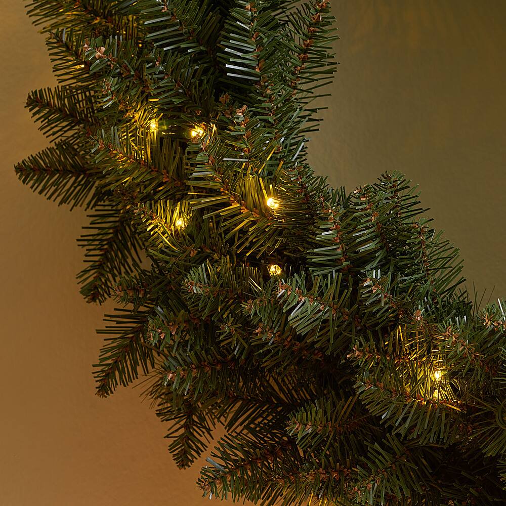 Beautiful wreath with lighting. Looks full and fresh and great from the street.