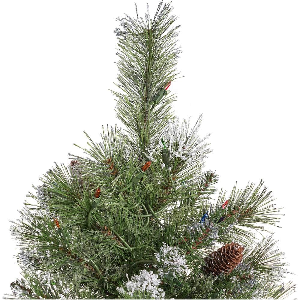 When i received the tree, one of the rods was sticking 6 inches out of box. The packing consisted of it just being shoved in box. Luckily nothing was broken. Once i put the pieces together, it was definitely going to require a lot of work moving branches around because it just had tight bundles on each branch. After spending over hour fanning out branches, it still was not full and thick like in picture. The built in lights are also thicker at top so it looks odd. Pretty dissatisfied. The snow and pine cones are accurate though.