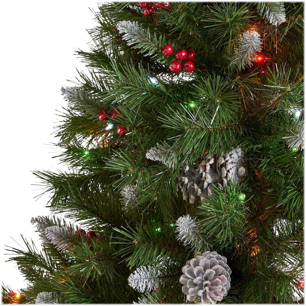 This review is from Noble House - 9' Mixed Spruce Pre-Lit Hinged Artificial Christmas Tree with Frosted Branches, Red Berries and Frosted Pinecones - Green + Clear Lights