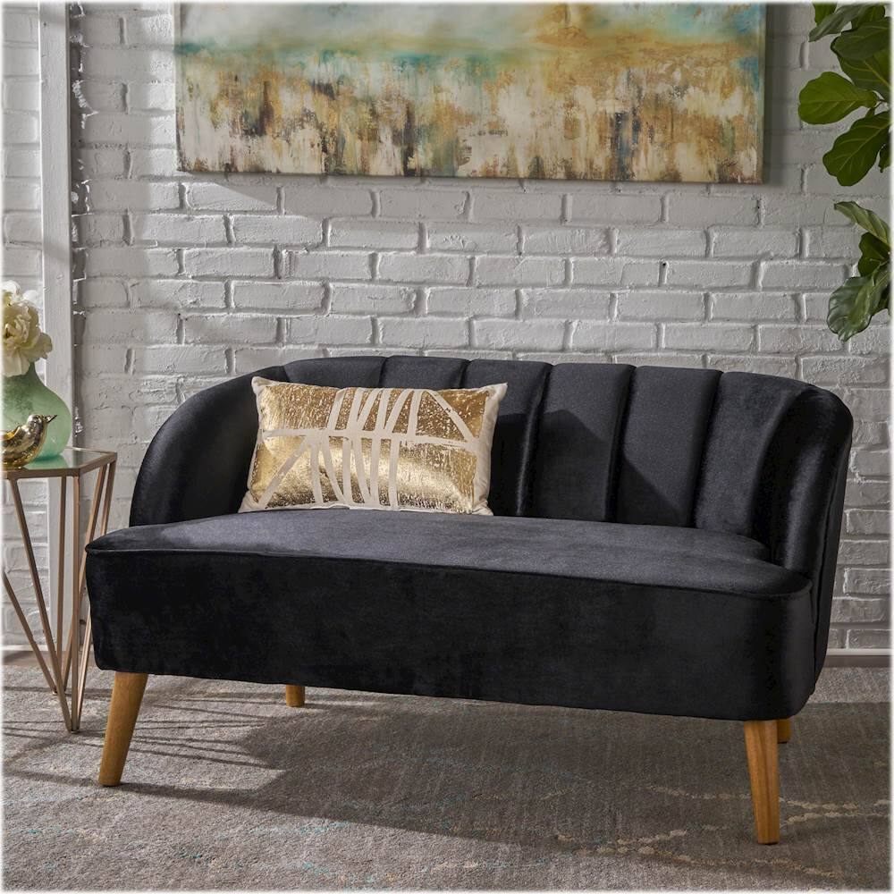 It’s so cute, but very small, I knew it was a loveseat, but sitting next to another adult is a very tight fit. We treat it more as a one person seat. I guess I should’ve looked more into dimensions, because every time I have guests over they say it looks like doll furniture (I also got on chair the same design) I love this style and the seashell look to it I just wish it came in a larger size! There was quickly a tear in the seam as well there’s thick stitching on the side, I’m going to try and sew or staple it down so the couch doesn’t fall apart. I found this year ten days after purchasing, it won’t let me attach the image since it’s too large of mb. But I could attach a photo of my 6 yr old niece and 1 yr old nephew on it for size reference (would’ve been helpful if there was this in the stock photos)