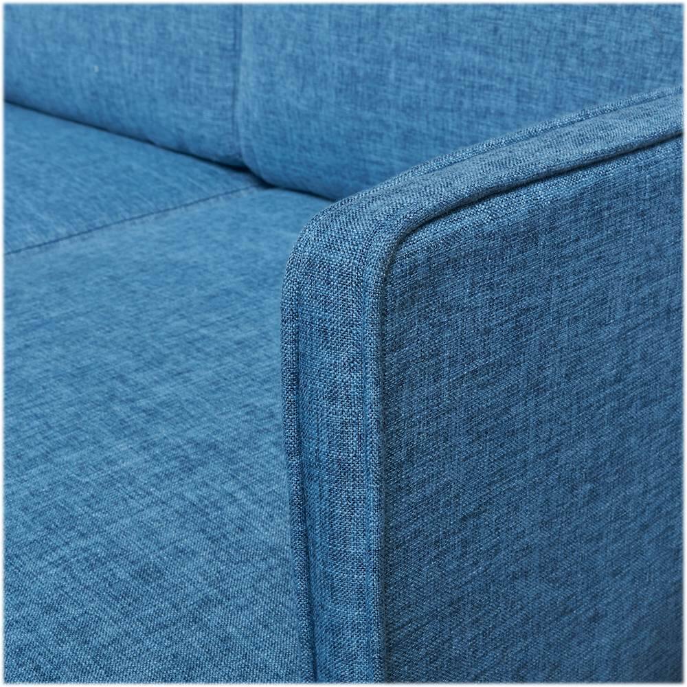 Stiff couch with small back rest but its easy to put together and small enough for my studio apt