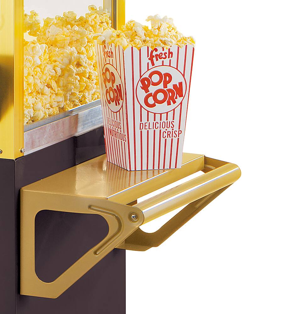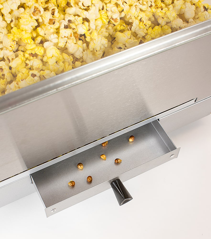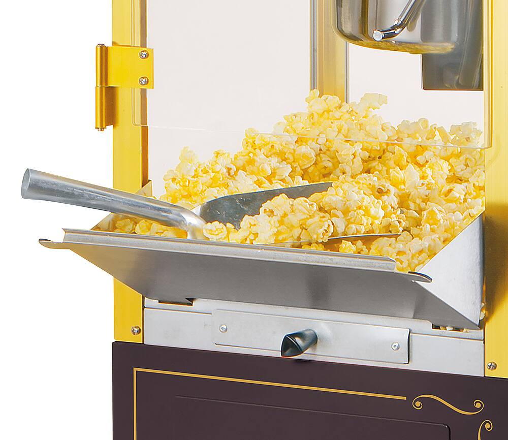 Works good. Popcorn tastes great. It is a little small inside and can be difficult when you dump the kernels into the bucket. This is because the pot lid only has a metal tab, which gets hot. So you have to hold open the pot lid and try to dump the kernels in, but there isn’t much space between the kettle lid and the top. Using the included measuring cups really helps. Overall it’s a really great machine and it looks very nice. I’ve gotten many compliments.
