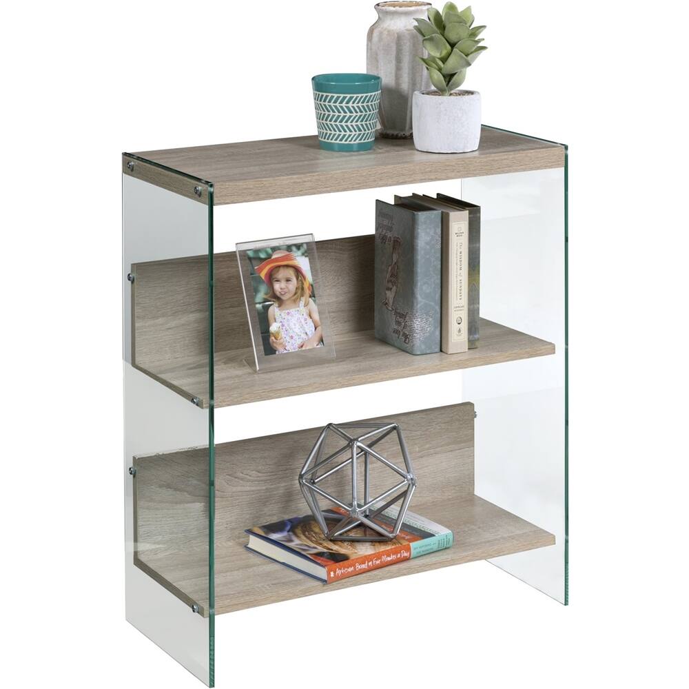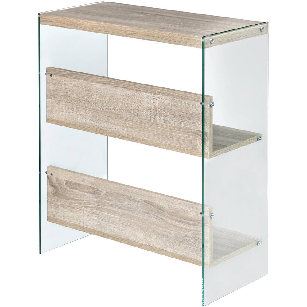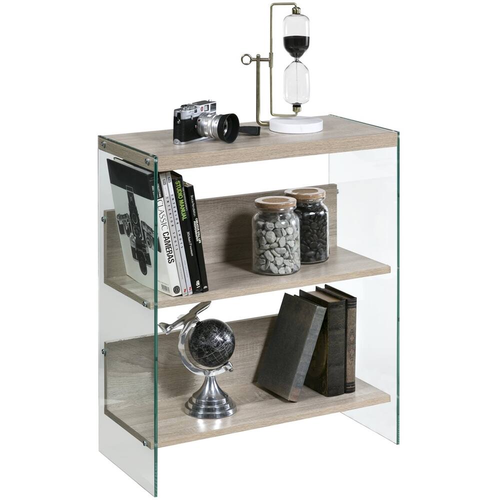 Was searching everywhere for a modern shelf like this for end of kitchen island Absolutely love this except the corner was barely tapped while bringing in groceries and the right glass panel literally exploded into thousands of pieces Company did send replacement. Thinking of getting bumpers or putting in more obscure area. Would never buy this in the coffee table version or with kids around Too dangerous. So hard to give stars. Which I could grade on quality and style so went in the middle