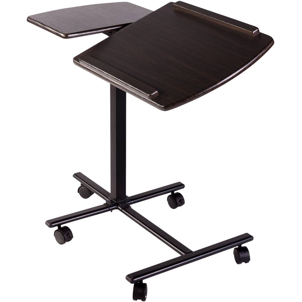I bought this b/c I needed a standing desk at home. I like to switch between standing and sitting but didn't want something big and bulky. I like this b/c it easily rolls out of the way when I don't need it and can be lowered if I need it for something else. The fact that it has an adjustable angle for the table is a bonus. I also like that it has the stationary side bit that can hold other items. It was pretty easy to put together. Overall, its a great desk and I highly recommend.