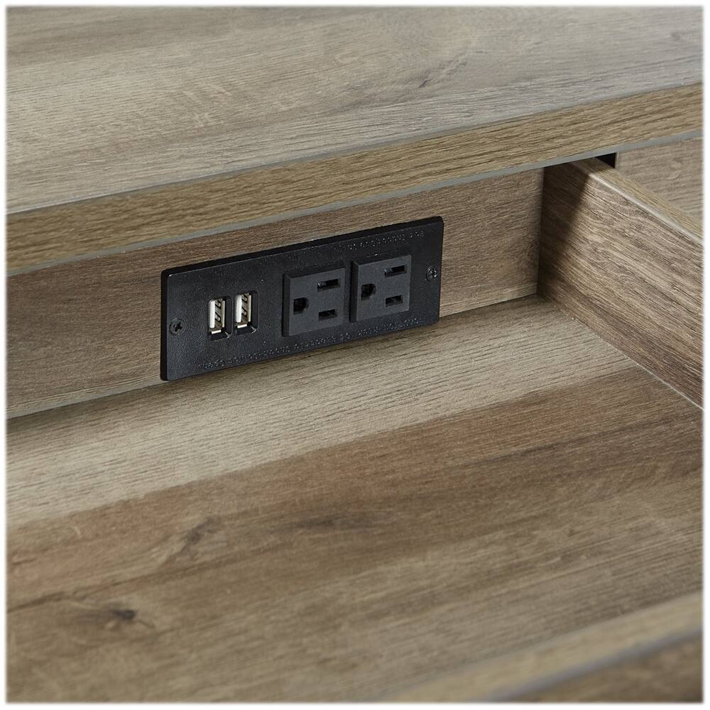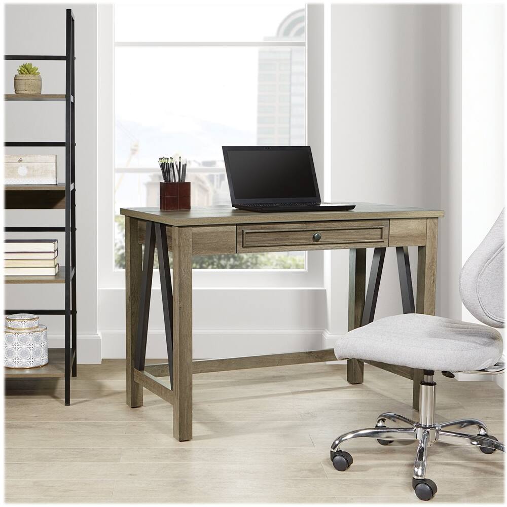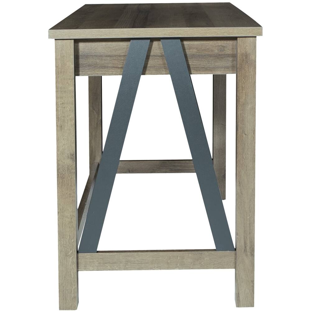 This desk is nice and sturdy with ample work space. Style is rustic and it’s size is perfect for smaller spaces. I would have given it 5 stars, but the USB/electrical port is located inside the drawer which is awkward and only accessible with the drawer open. This port is definitely a bonus option, but would be better placed on the front or side of the unit. Overall, this is a nice value for the money!