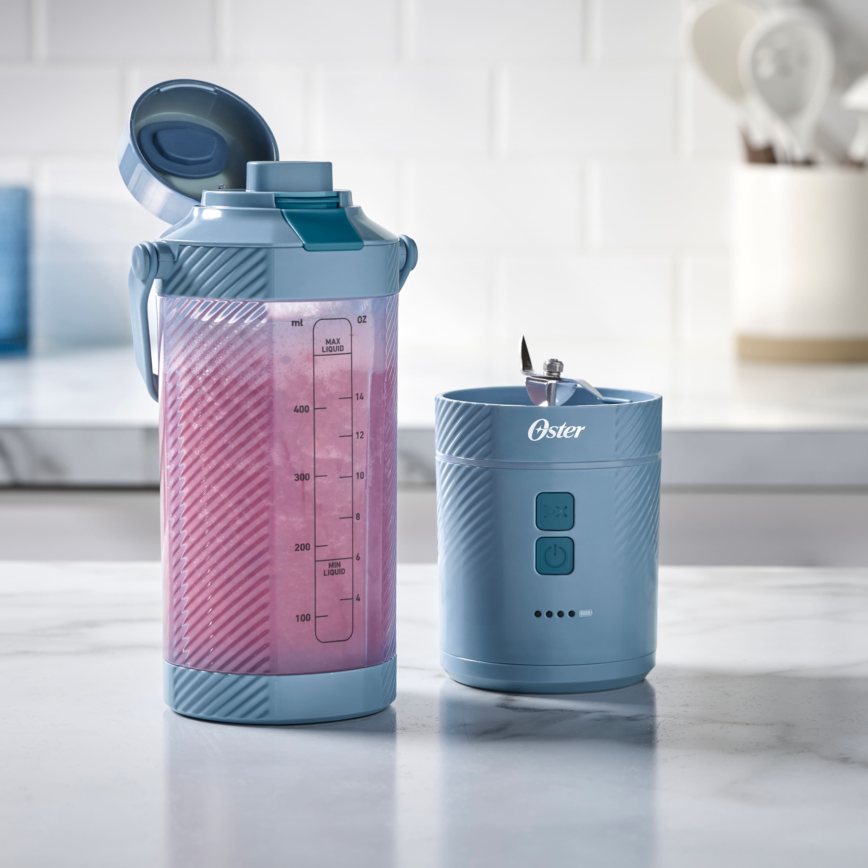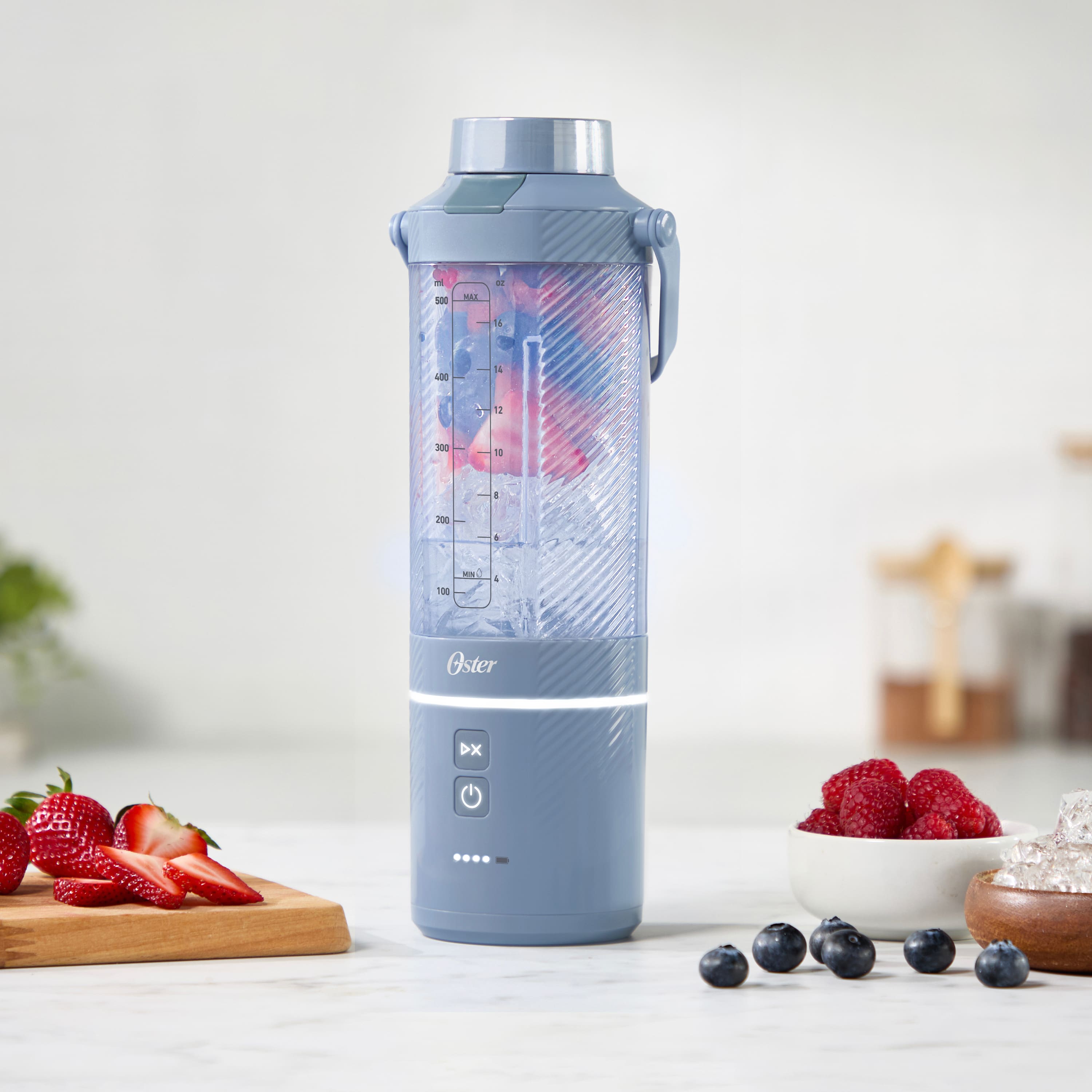 VERY HAPPY with this purchase! I have had and have multiple blenders for smoothies, cooking, etc. as costly as $500 units. This little beast has become the go to blender for smoothies and has worked like a charm with frozen fruit, ice, granola, etc. My son then takes it to go on his way to school or practice so it is super convenient. Very dependable brand OSTER so you can't go wrong. Highly recommended as a secondary small portable blender for small cooking options and personal smoothies, etc. A+