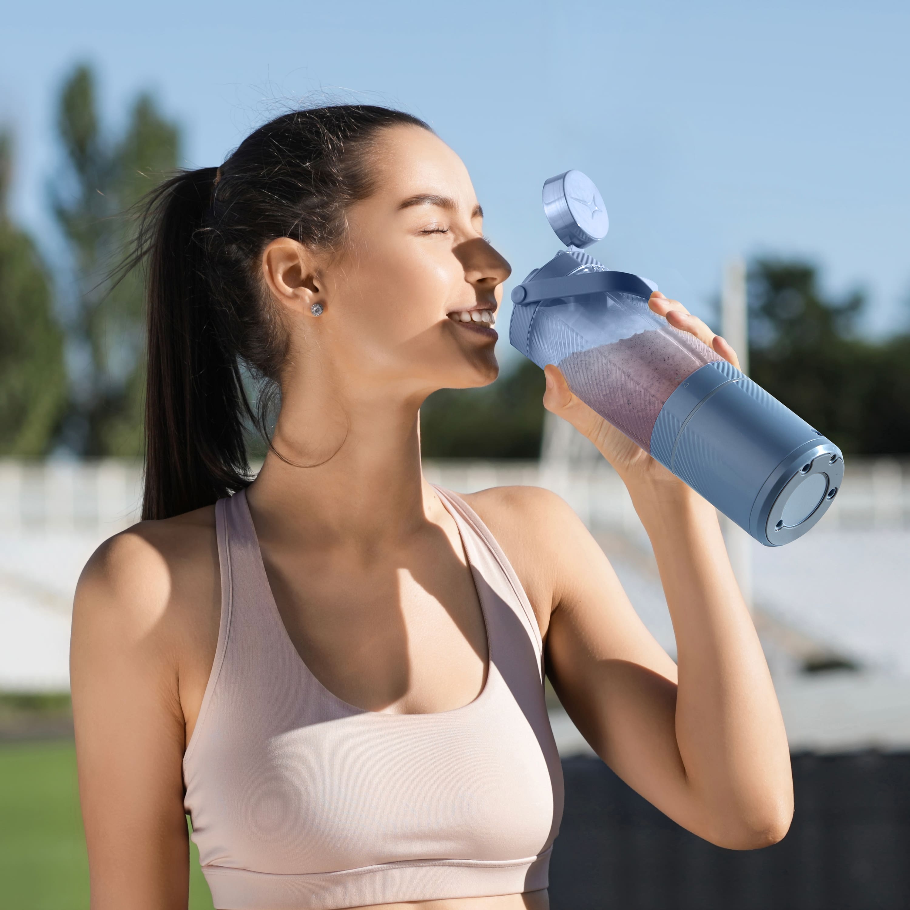 This is my new go-to blender! It quickly and quietly pulverizes ice cubes and frozen fruit into the perfect smoothie. It really is portable with many smoothies per battery charge. This is great for travel, I can still get in my protein shakes and smoothies when not at home. Also ideal for mornings on the way to school, work, or the gym. Clean up is super fast and easy. You will love this!