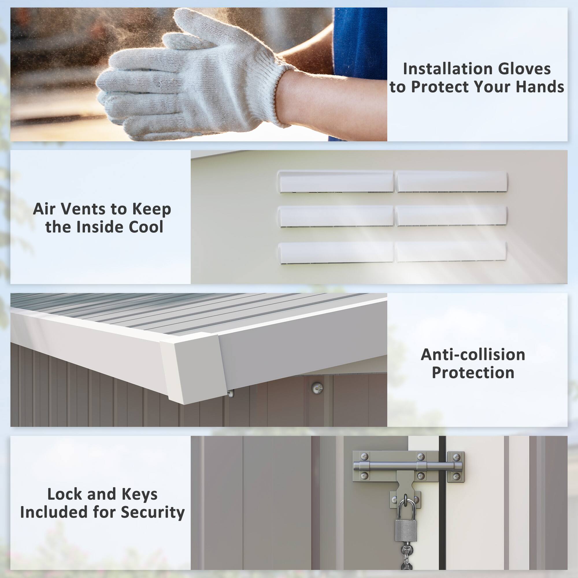 Disappointed with the quality. It's extremely flimsy,material thin like foil. Doesn't seem sturdy to withstand normal outdoor conditions. Also, no flooring included, which makes it even less stable. Overall, it is weak and not very durable. Wouldn't recommend it unless you are looking for temporary or lightweight storage options.