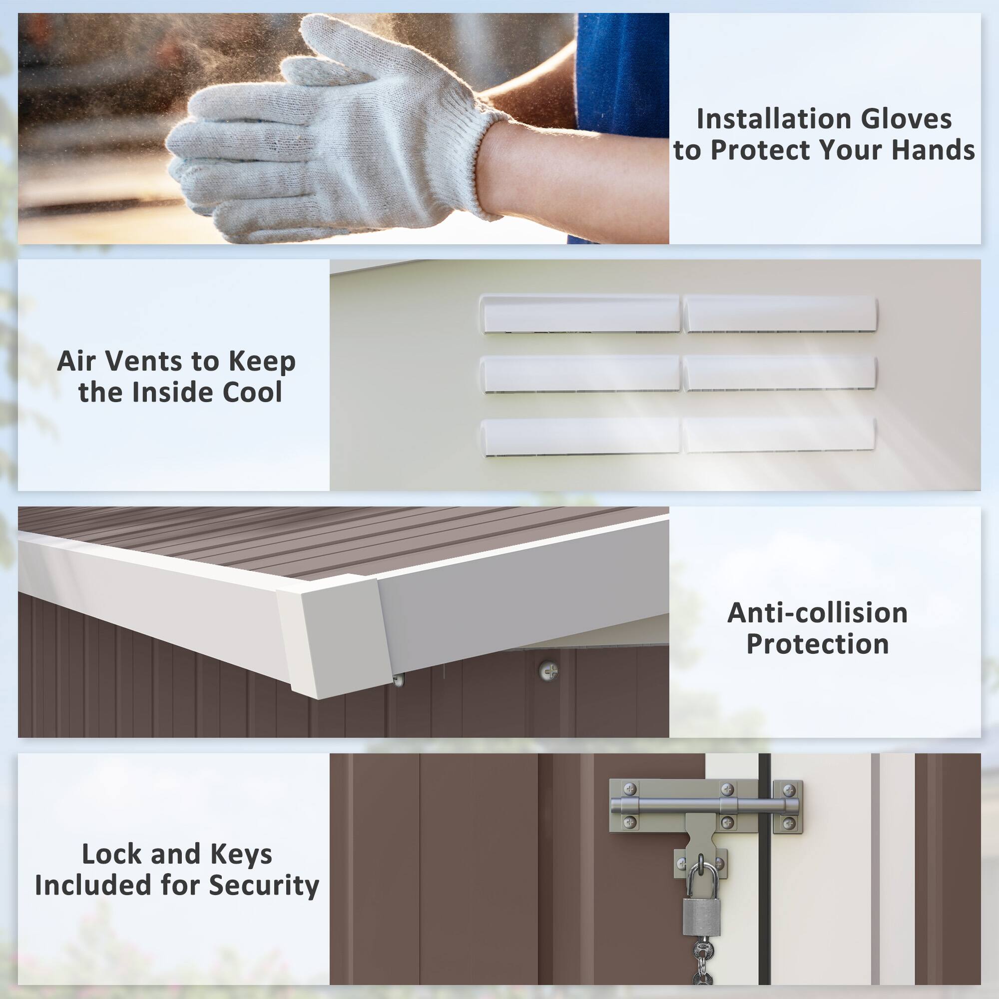 Disappointed with the quality. It's extremely flimsy,material thin like foil. Doesn't seem sturdy to withstand normal outdoor conditions. Also, no flooring included, which makes it even less stable. Overall, it is weak and not very durable. Wouldn't recommend it unless you are looking for temporary or lightweight storage options.